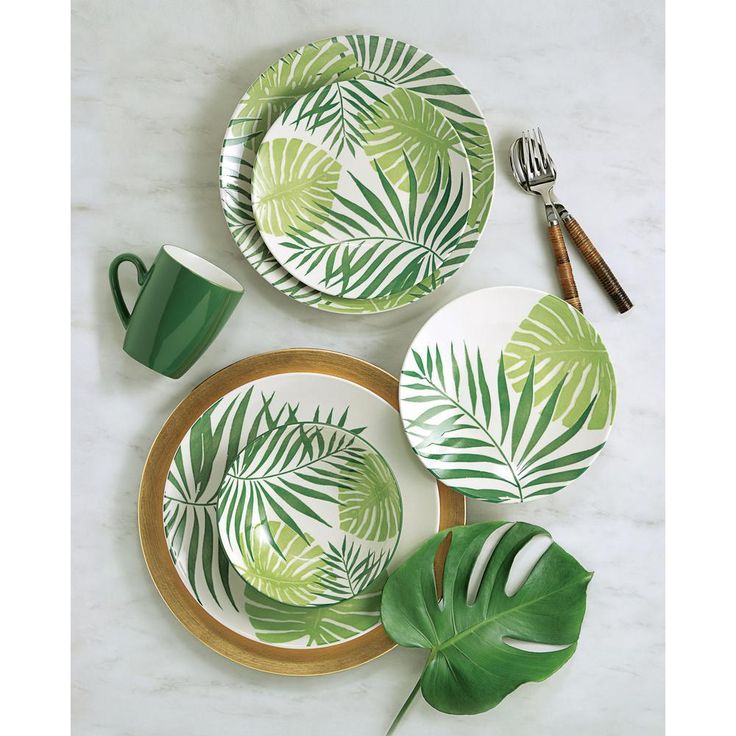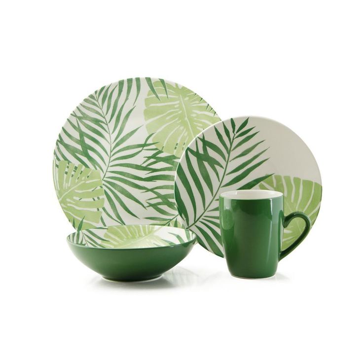 Palm Leaf 16-Piece Casual Green Ceramic Dinnerware Set (Service for 4)