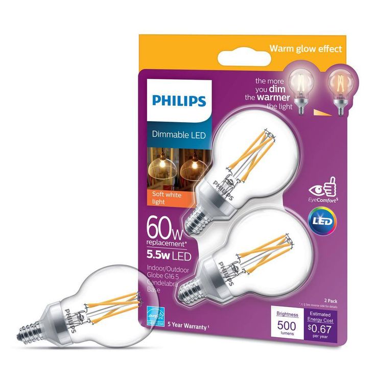 This 60-Watt equivalent decorative globe G16.5 light bulb is an energy-saving alternative to a standard incandescent G16.5 bulb. It provides a bright, white light with a clear finish for a sparkling effect. It is fully dimmable with a medium base and is ideal for use in wall sconces, chandeliers and other decorative fixtures.