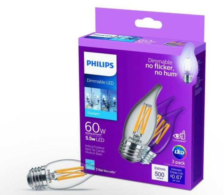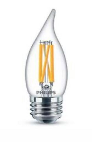 The look you love with the performance you expect. Philips 60-Watt Equivalent Dimmable Clear Glass LED BA11-Light bulbs are a smart energy saving alternative to your standard incandescent with a classic glass design. This Philips 5.5-Watt LED B11 candle light bulb in natural daylight is the perfect replacement for anywhere traditional candle shaped bulbs with candelabra base are used, such as chandeliers, foyers, recessed coves and bedrooms. The classic glass design with exposed filament offers a nostalgic, warm appearance.