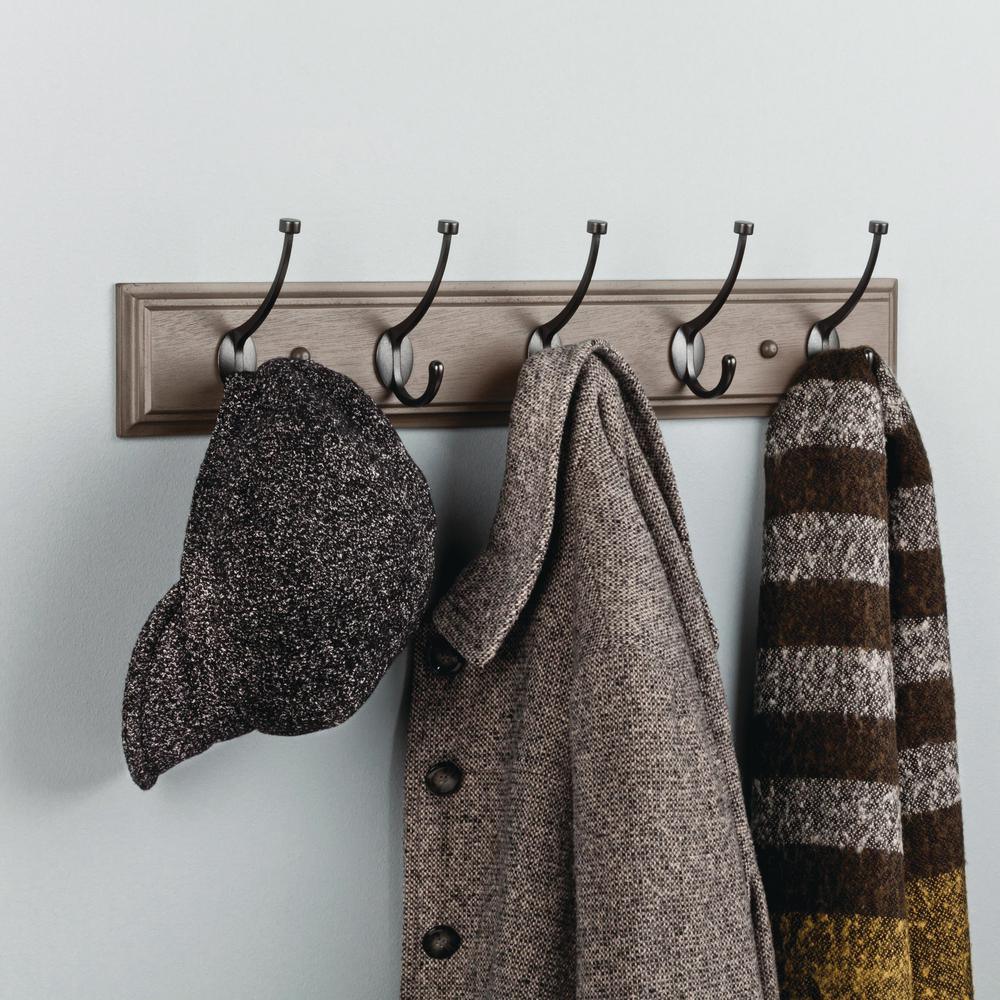 Organize in style with 1 easy step. From Liberty Essentials, this 26.5 in. Rail with 5 Pilltop Hooks is designed to hold a wide variety of items such as purses, coats, scarves and umbrellas at your entryway. Perfect for organizing your bathrobe and hairdryer in your bathroom also.
