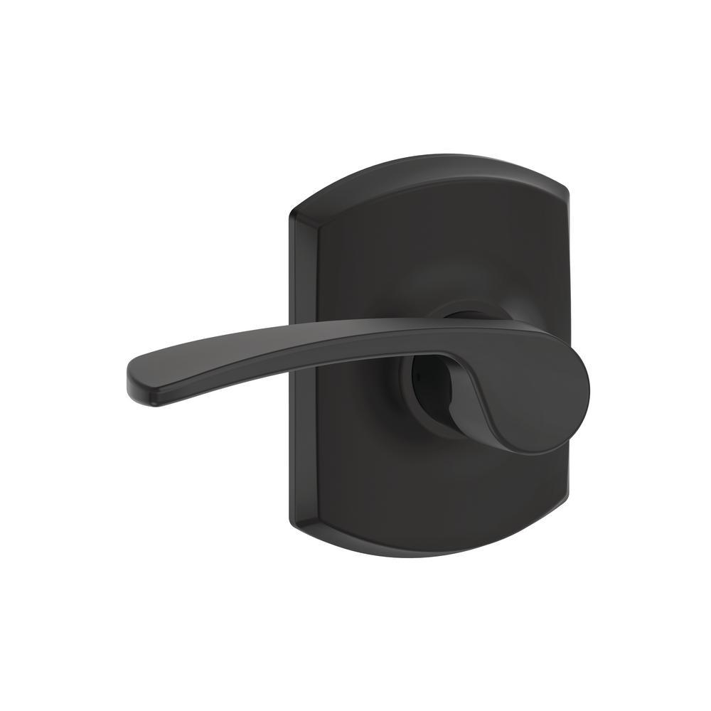 The Schlage Merano Lever with Greenwich Trim Hall and Closet Lock in Matte Black is perfect for use on doors where locking is not needed. The Merano lever has a graceful curve that makes it as delicate as it is chic, while the Greenwich Trims simple and chic look is especially glamorous. The striking appearance of the Matte Black finish creates an elegant look that's sure to be noticed in any style setting. Plus, its been designed and tested with strength and durability in mind.