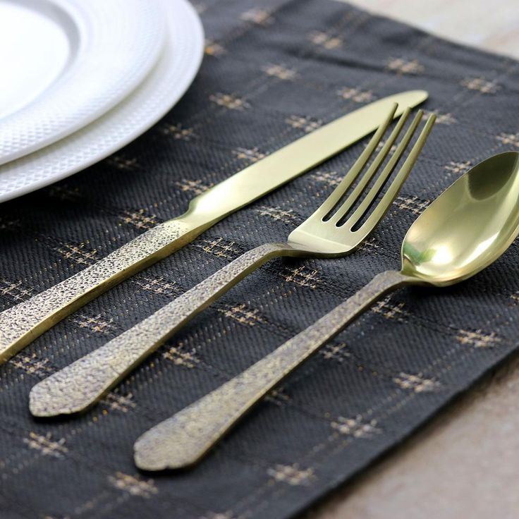 Zambezi 5-Piece Gold Hammer Texture Stainless Steel Flatware Set (Service for 1)