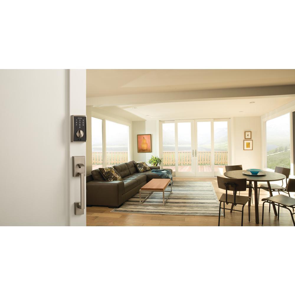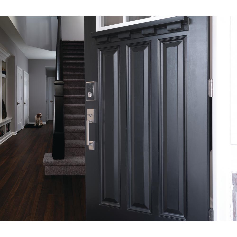 The Schlage Century Satin Nickel Entry Door Handle with Latitude Lever is perfect for use on exterior doors where extra security is needed. The Latitude lever offers a crisp perspective on minimalist design with its clean lines and rectangular features, while the Century trim is chic with a delicate, slightly curved shape. When finished in Satin Nickel, the lever offers a tasteful and flattering accent to any home. The lever unlocks when the door is opened from the inside, allowing you to leave quickly and conveniently and re-enter easily. Plus, it was designed and tested with strength and durability in mind.