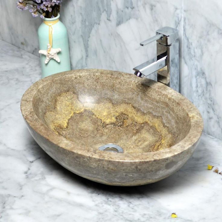 This natural travertine oval sink is both unique and sophisticated. The colors of the travertine stone allow it to mesh well with the existing color scheme of your kitchen or bathroom. Polished interior and honed exterior. this elegant addition to your bathroom. Note: Faucet is not included.