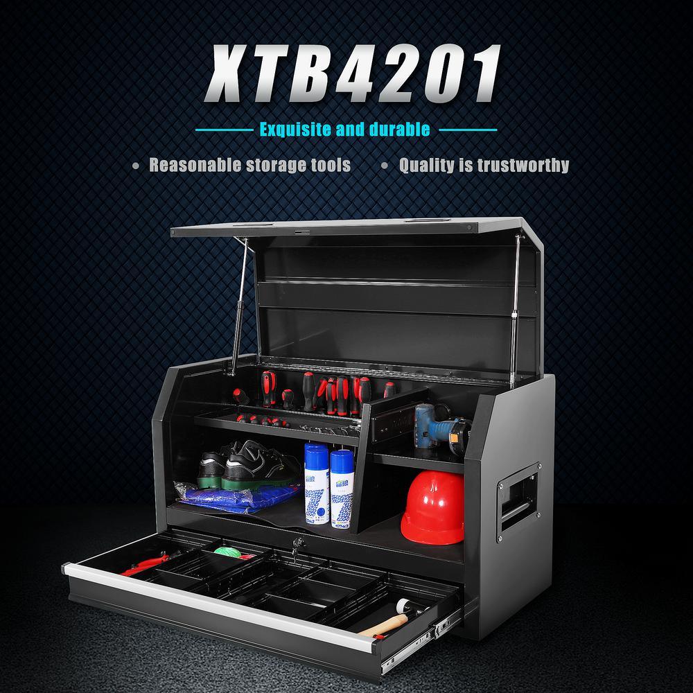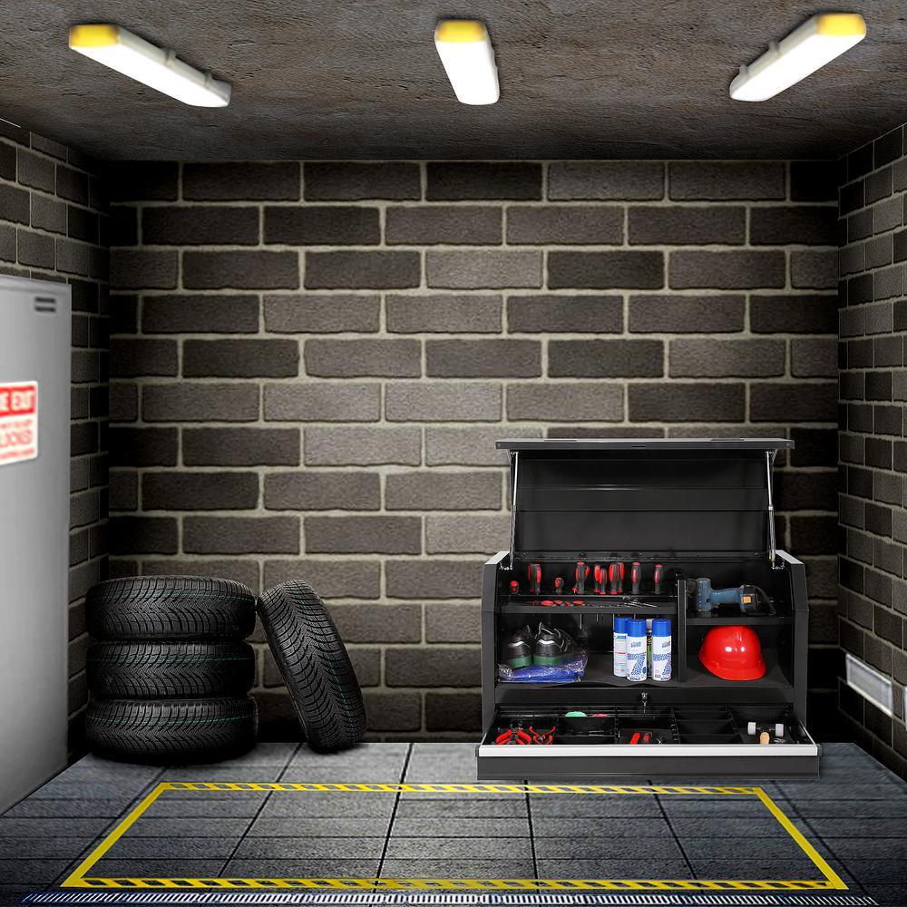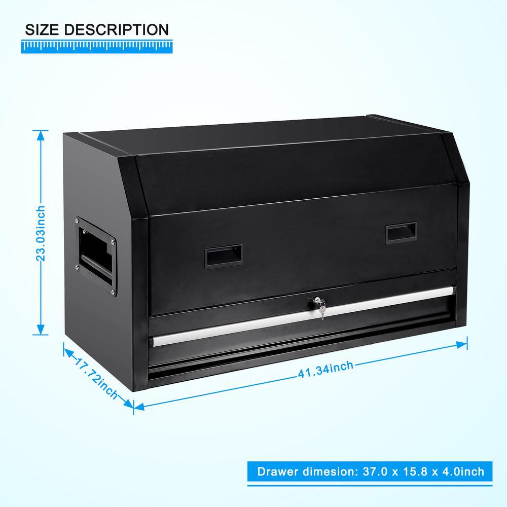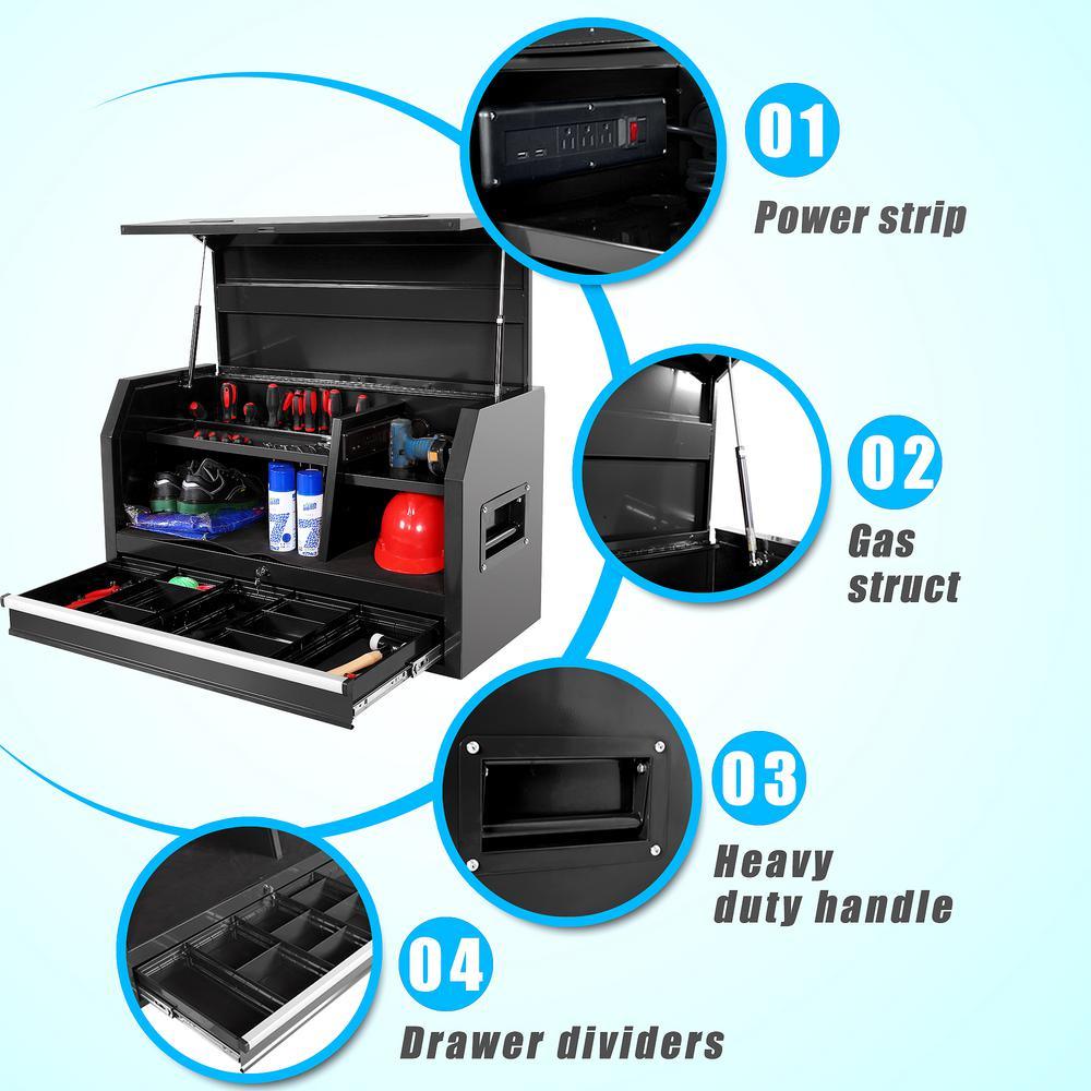 This Frontier heavy-duty, durable tool storage chest will give you plenty of space to keep your tools neat and organized. It comes with drawer dividers and 3 adjustable shelves with ample room for your tools. You will find an integrated power strip with 3 outlets and 2 USB ports that can power your tools and electronic accessories. Total cu in: 16,870.