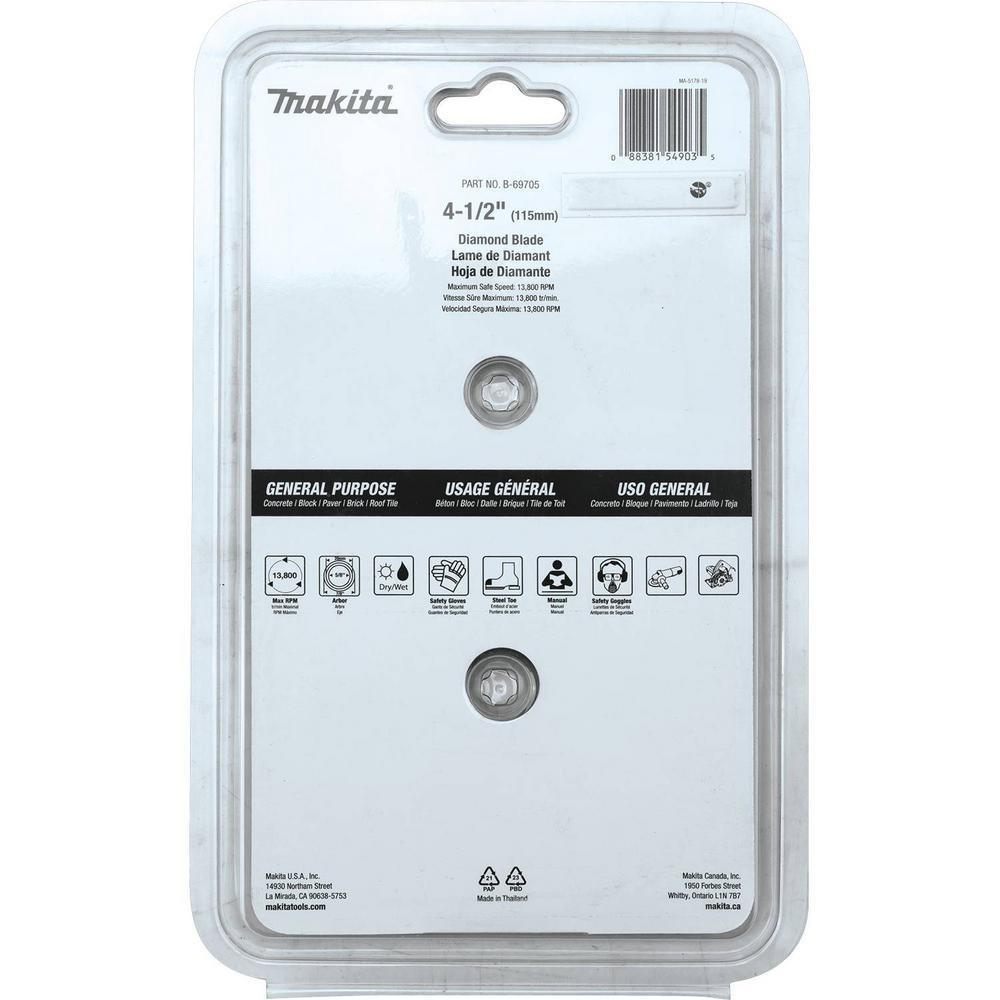 The Makita 4-1/2 in. Turbo Rim Diamond Blade is ideal for general purpose cutting applications including block, brick and cured concrete. The turbo rim design is engineered for constant contact with the material to deliver a smoother finish than segmented blades. Diamond blades are part of Makita's growing line-up of solutions for concrete applications.