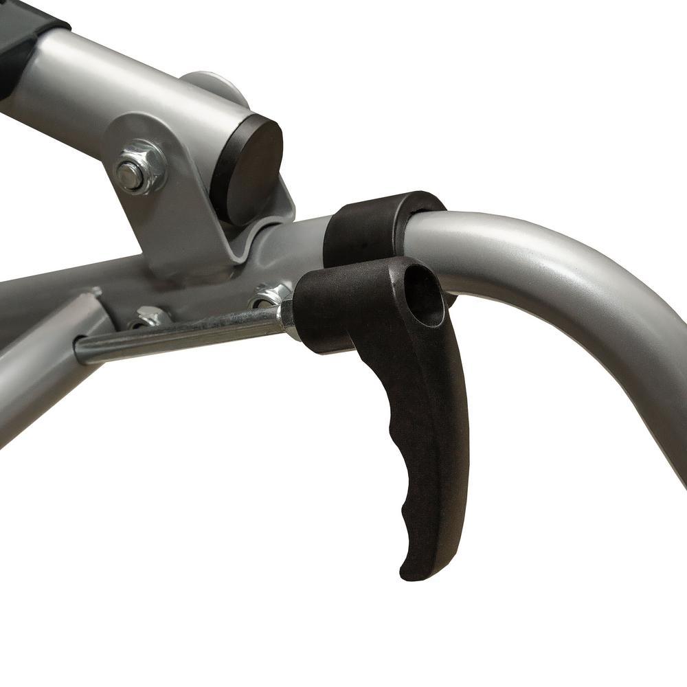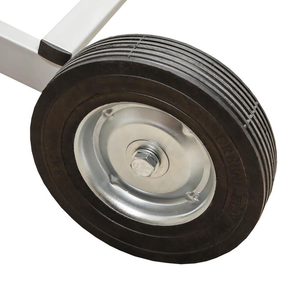 FEATURES: Portable design with a pair of high-traction 8” wheels for mobility, an automatic locking pin release lever for quick and easy folding action/ storage, plus two adjustable solid steel plates with spaced slots for versatile mounting options
