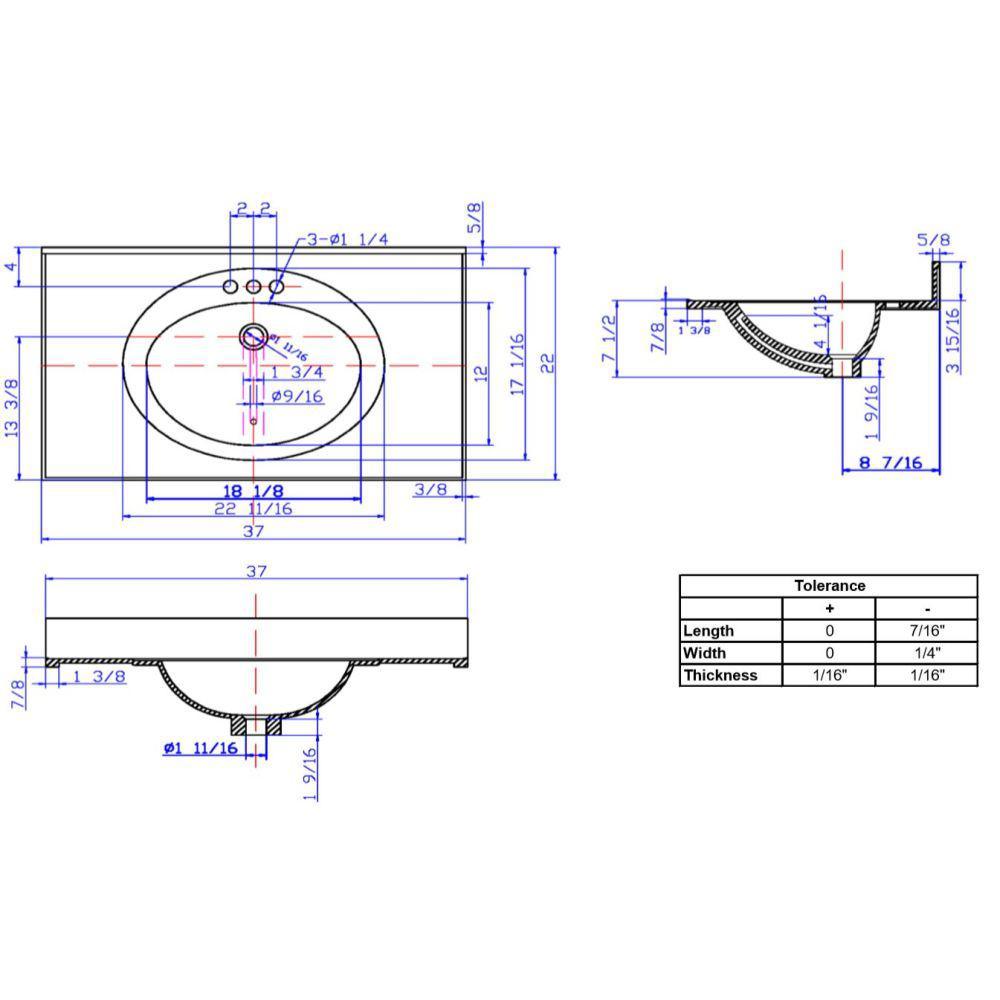 Give your bathroom that clean, classic look you’ve been searching for with the Design House 37 in. Cultured Marble Vanity Top with solid white finish. This spacious top features a drip free edge to help contain excess water and squared edges that evoke a more modern look. Three pre-drilled holes make installing a 4 in. centerset faucet easy and an integrated backsplash creates a barrier between your wall and the vanity to help prevent mold and water damage. The oval bowl at the heart of this top is integrated directly into the design for a seamless look. The Cultured Marble Vanity Top comes with a 5-year limited warranty that protects against defects in materials and workmanship.