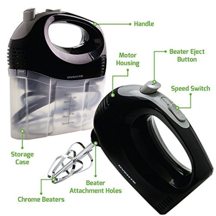 5-Speed Ultra Power Hand Mixer with Free Storage Case, Black