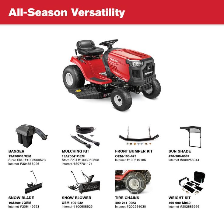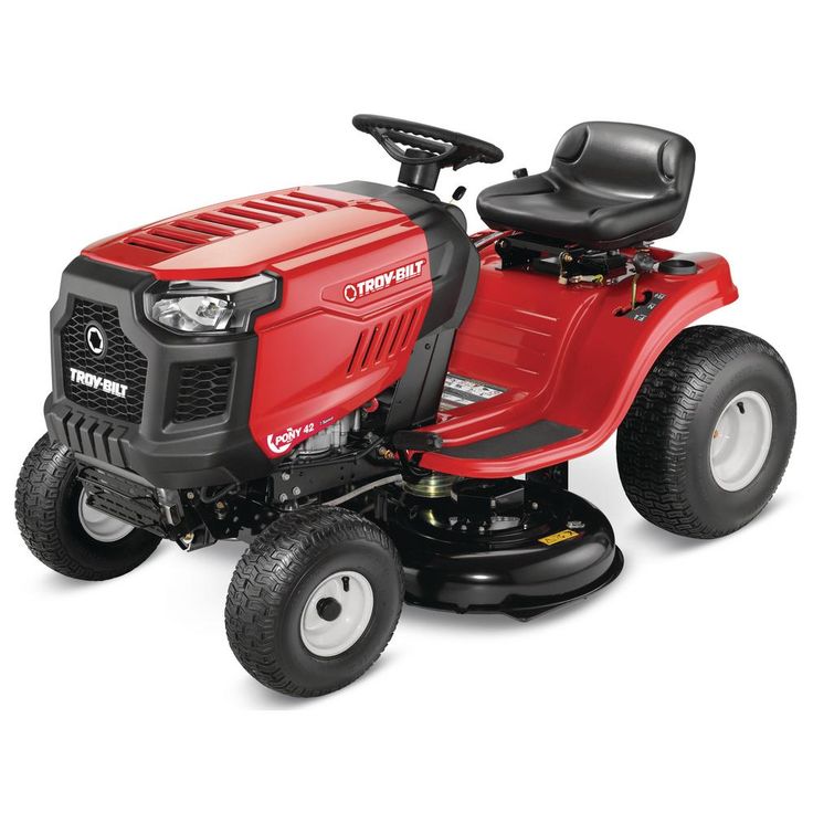Regular price $2,099.00Get solid, strong performance and plenty of power for your mowing needs with the Pony 42 riding lawn tractor. Tested for reliable starting in all weather conditions, the Troy-Bilt engine with AutoChoke runs smoothly and efficiently. The 42-in cutting deck delivers a clean, even cut and you can easily adjust the mowing speed with 7-speed Shift-on-the-Go transmission. You'll find it easier to get on and off with the Step-Thru frame design and automatic headlights provide increased visibility and added safety at any time. Get more versatility with the Pony 42 riding mower with optional attachments like a rear bagger or mulch kit and tow behind accessories such as aerators, dump carts and sprayers. You can depend on Troy-Bilt lawn tractors to keep yardwork from feeling like a chore.