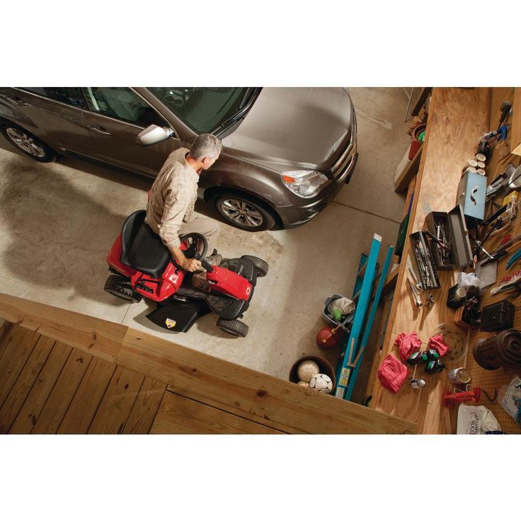 Space-saving design makes the riding mower easy to store in garages and sheds