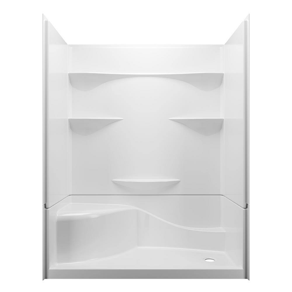 Create the shower of your dreams with the Coronado Acrylx 60 in. x 30 in. Single Threshold Right Drain Shower Kit in White with Bench with Door in Dark Bronze. This kit includes a high gloss, truer white finish base and walls, as well as clear tempered glass doors with chrome hardware. The base features an integral corner seat and low 3 in. threshold for easy entry and exit, making it an excellent solution for those with mobility issues. The walls are lightweight yet durable, with a wedge/lock system for easy installation. And with 4-generous toiletry shelves and crystal clear glass doors, this kit offers both style and functionality. Plus, with the strength of ArmorCore, the base can withstand over 1,000 lbs. of pressure and is less porous for easier cleaning. Upgrade to the Coronado Acrylx 60 in. x 30 in. Single Threshold Right Drain Shower Kit for a modern, efficient and long-lasting home shower.