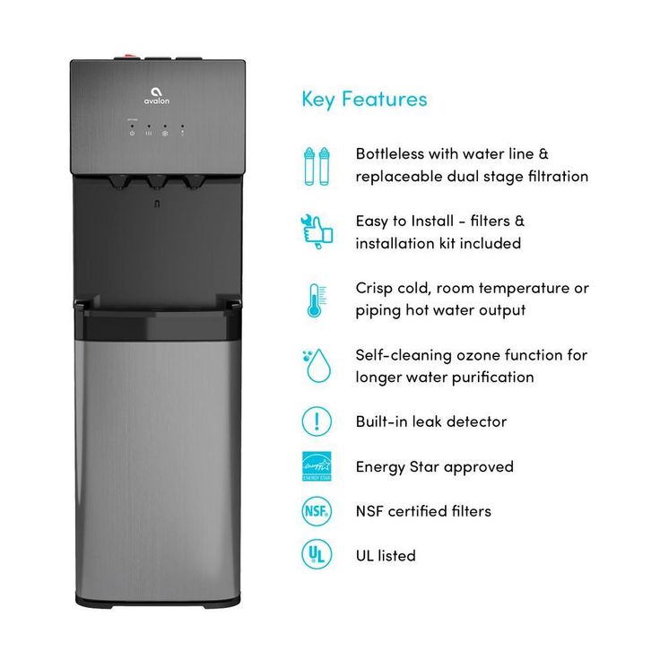 A5BLK Self Cleaning Bottleless Water Cooler Dispenser, UL/NSF/Energy Star, Black Stainless Steel