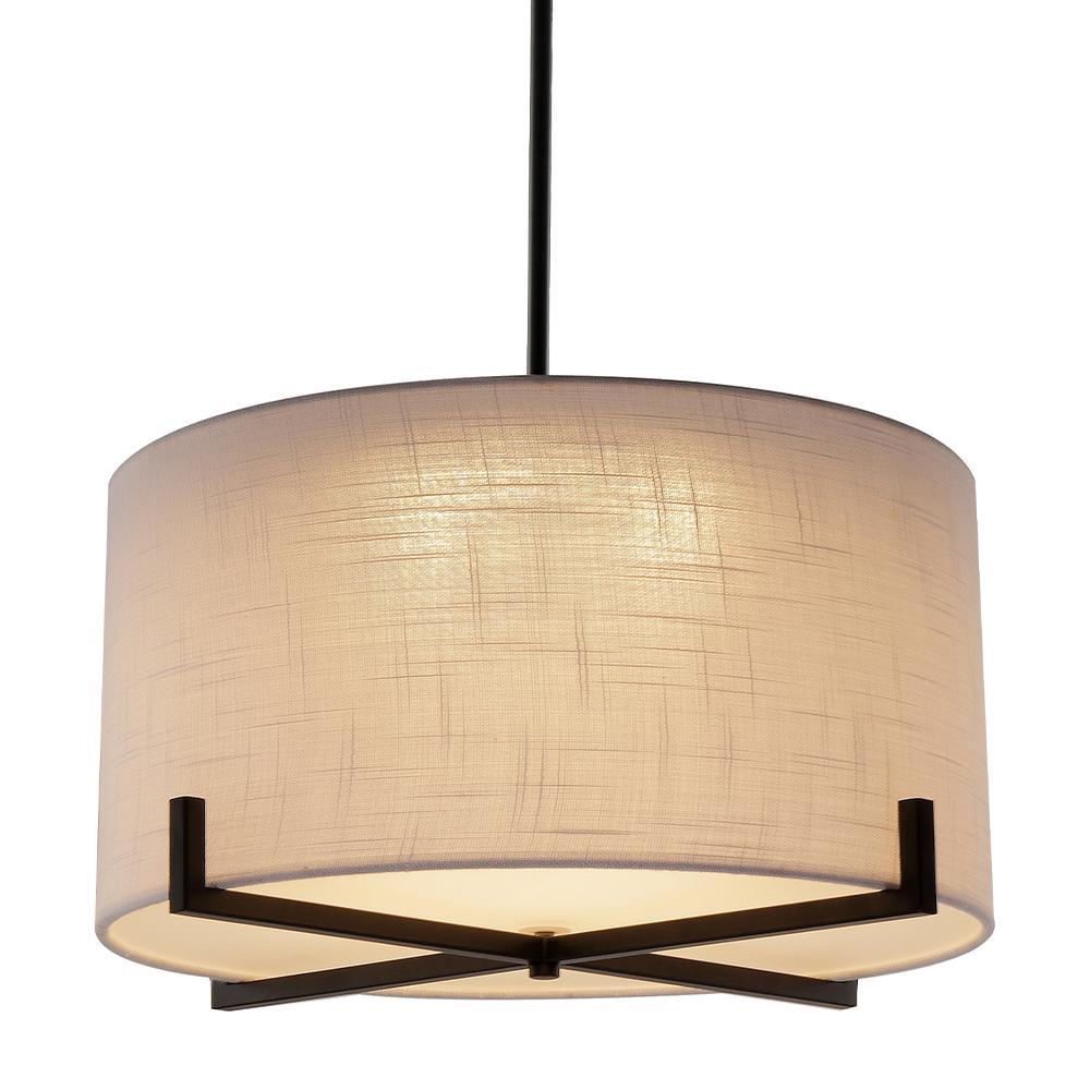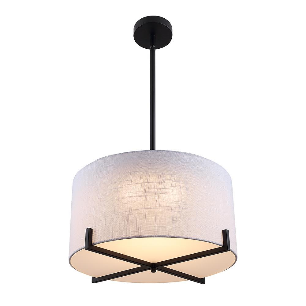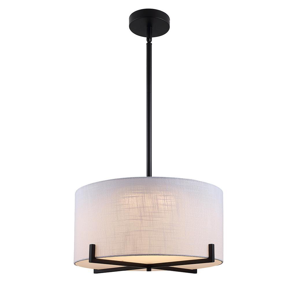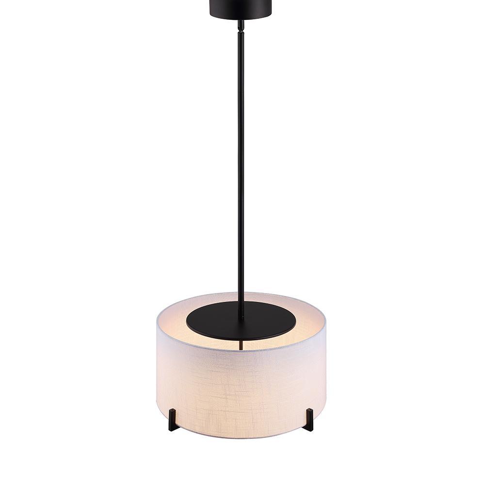 35-Watt Matte Black Integrated LED Pendant with Fabric Shade