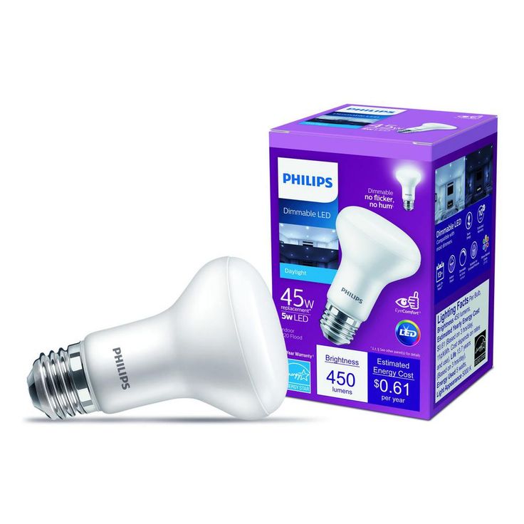 Philips Energy Saving LED 6-Watt R20 indoor flood light is ideal for residential use in kitchens, living rooms and dining rooms and for commercial use as general lighting in retail and hospitality spaces. It provides a soft, white light and is perfect for general room lighting. Featuring a sleek, white design, this fully dimmable, medium base flood light replaces your current 45-Watt halogen R20. Philips Energy Saving LED R20 flood light can be used in recessed cans and track light fixtures.
