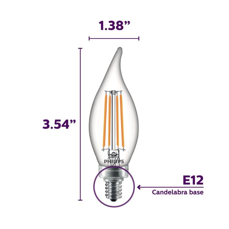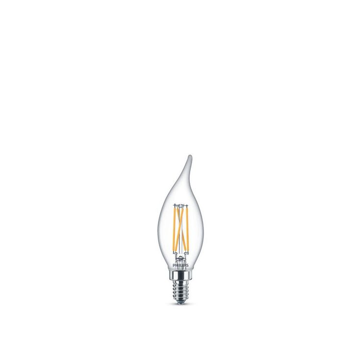 The look you love with the performance you expect. Philips 40-Watt Equivalent Dimmable Clear Glass LED B11 light bulbs are a smart energy saving alternative to your standard incandescent with a classic glass design. This Philips 4.5-Watt LED B11 household Light Bulb in natural daylight is the perfect replacement for anywhere traditional candle shaped bulbs with candelabra base are used, such as chandeliers, foyers, recessed coves and bedrooms.
