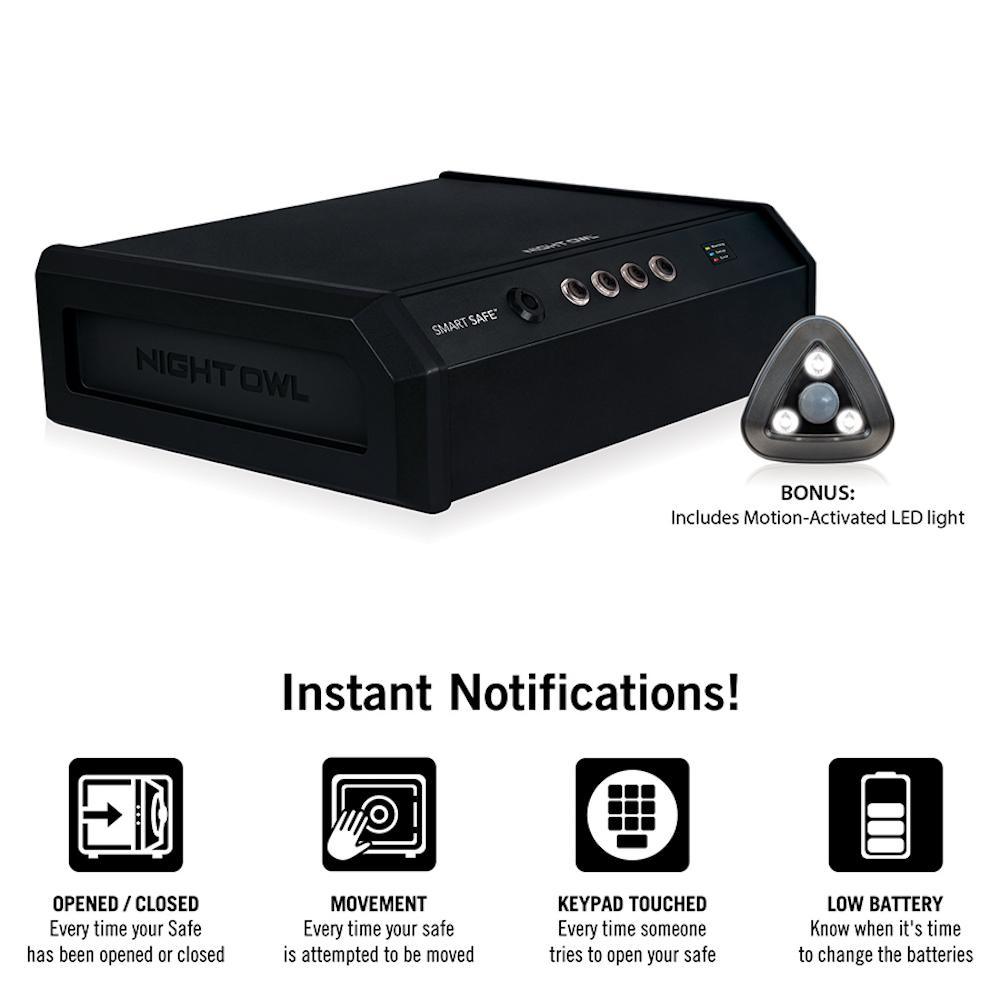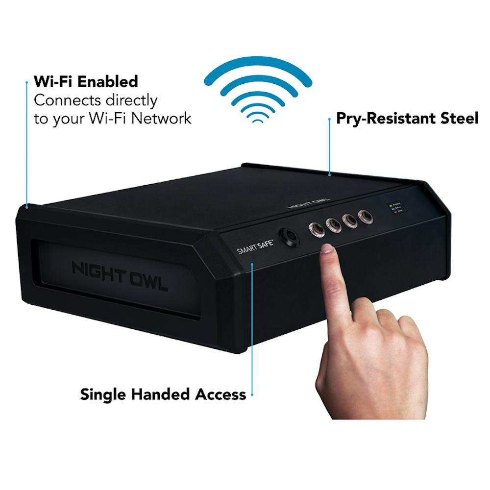 In todays technologically advanced world, safeguarding your property may seem impossible. Thieves have access to all the innovations of the 21st century. Your Safe should too. Unfortunately, most safes do not. For several decades, there has been little to no advancement in how safes are made or the features they offer. Until now. Introducing Night Owls Wi-Fi Enabled Smart Safe. With Integrated Cloud Connectivity, you can easily connect to your Wi-Fi network and receive real-time alerts directly to your Smart Device. If your Safe has been opened or closed, you will be notified. If your Safe is moved, you will be notified. If the keypad is touched, you will be notified. If the Safe battery is low or your Wi-Fi connection is lost, you will be notified. Not only do these alerts help you protect your property from thieves, they also help protect from the curious minds of children and guests. With pry-resistant steel and single-handed access, this safe is both secure and convenient. If you want a Safe that utilizes Smart technology to keep you in the know, then look no further than Night Owl. Be Smart. Be Safe.