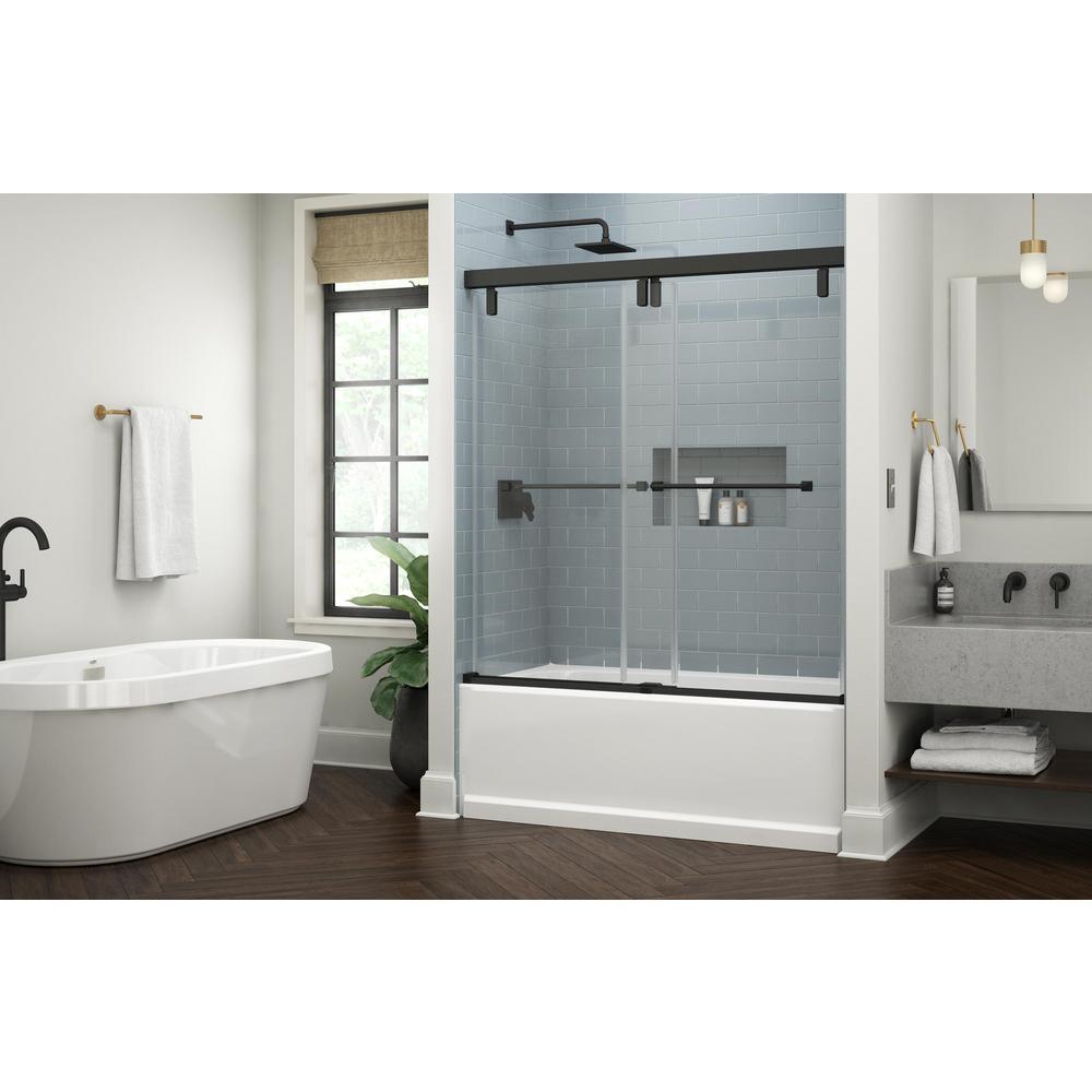 Whether you’re looking for a moderate DIY project or working on a bathroom remodel, upgrading your bathroom with a new sliding shower door is easy with the Delta 1-2-3 custom sliding shower door program. Delta’s custom glass shower door program offers 1000s of design combinations by choosing your glass shower panels, shower door track, and shower door handles to build a unique, personalized glass shower door. Clean, sleek and modern, the Mod bathtub door track in matte black features a soft close system paired with a reversible flat track, and minimal metal components, for the perfect balance of form and function. Show off your beautiful shower with premium, heavy 3/8 in. ANSI certified tempered glass shower panels, featuring Delta Spot Guard with a completely transparent look for a glass shower door that is both simple and elegant.The Everly sliding shower door handles in matte black feature two convenient towel bars for extra bathroom storage in a transitional design silhouette that beautifully combines contemporary and classic qualities.