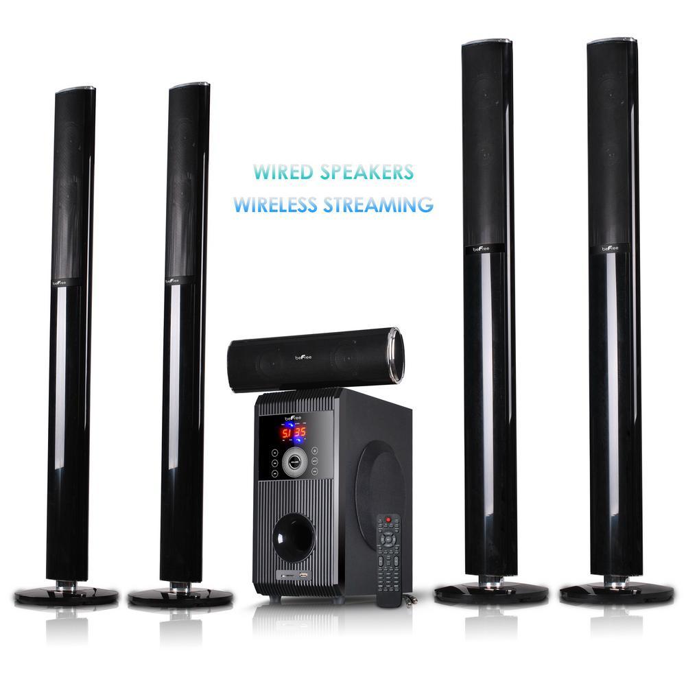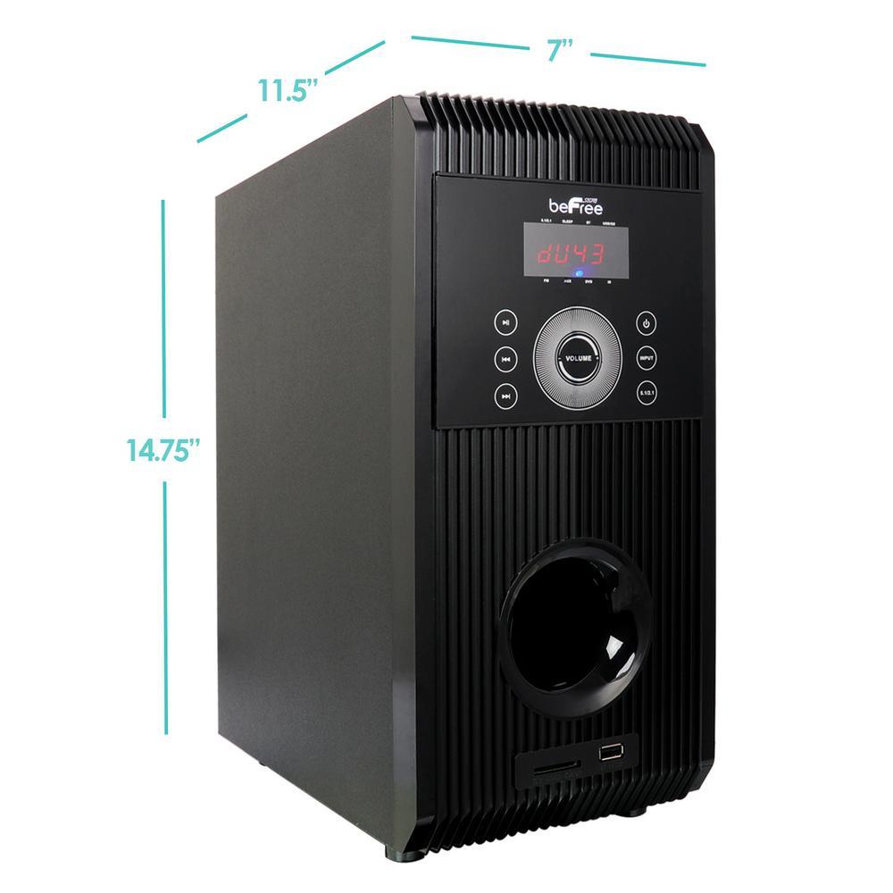 This 6 piece sound system includes 1 powered sub-woofer and 5 high-powered wired speakers as well as all the necessary cables and instructions needed for simple integration into any multimedia configuration. This compact, yet powerful speaker package makes for an excellent addition to any home theater system, personal computer or laptop, gaming system, digital media player, "I" device or any other audio/video device that can be connected via Bluetooth, USB, or SD interface. The included sub-woofer is housed in a digitally tuned, bass enhancing enclosure made of durable material for increased bass response.