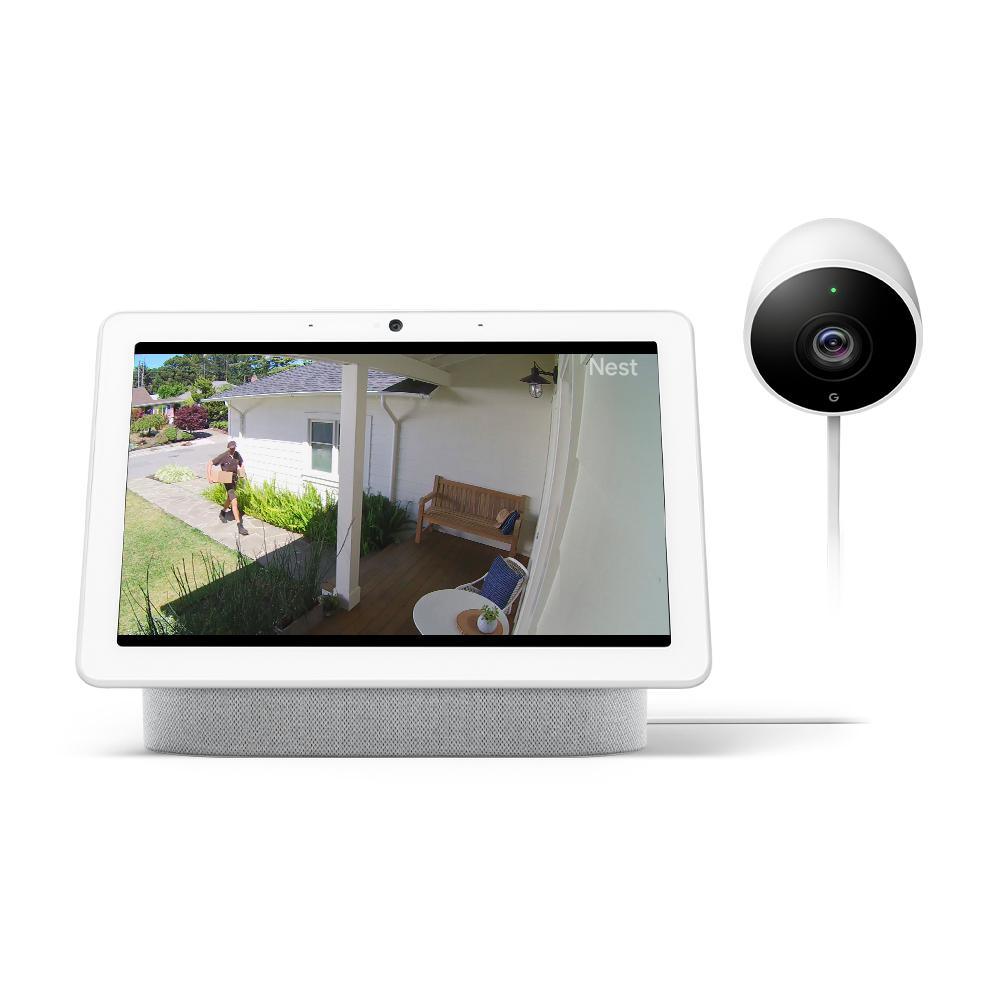 Pair the Nest Hub Max with the Nest Outdoor Cam for easy-to-use security. Nest Hub Max with the Google Assistant helps your busy family stay in touch and on track. Leave video messages and make video calls. Check in on home when your away with the built-in Nest Cam. Share reminders and to-dos. Everyone sees their own calendar, commute, and more with just a glance. View answers from Google. Enjoy your best and latest Google Photos. Watch YouTube videos, the news, live sports, and your favorite shows on YouTube TV. Listen to your playlists on YouTube Music, Spotify, Pandora, and more. On the 10 in. HD screen and stereo speakers, everything looks and sounds great. The Nest Cam stands watch 24/7, rain or shine. It plugs into power so you never have to worry about dead batteries, and also sends an alert to your phone when it detects activity. It even lets you talk back through the Nest app.