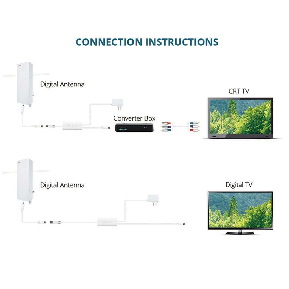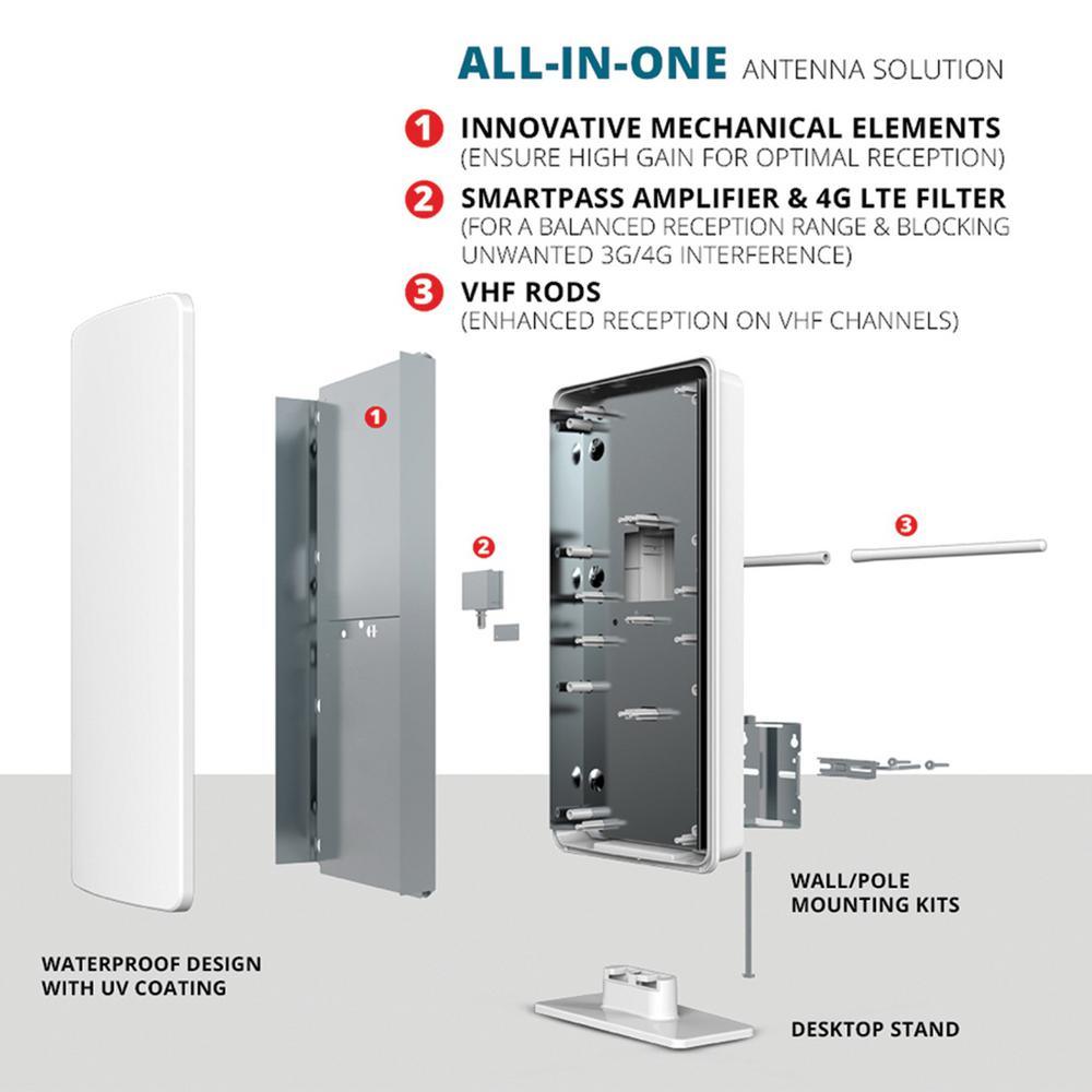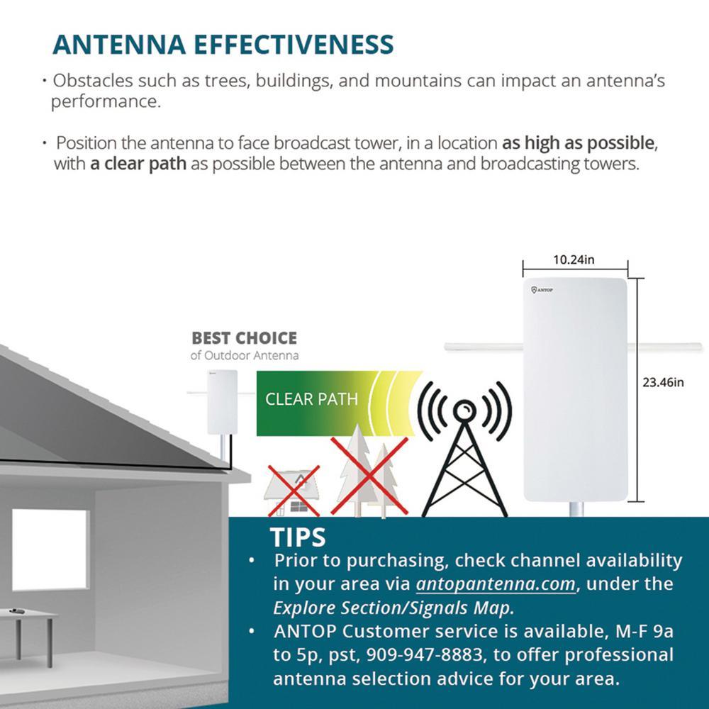 The Antop AT-400BV Big Boy Smartpass Amplified Indoor/Outdoor HDTV Antenna requires no monthly fees and no need to subscribe. Just plug it into a TV, scan the channels and enjoy the show. The Smartpass Amplifier uses an all-in-one design for balancing short and long range reception. High-gain reception shields for minimum interference. The durable exterior features a waterproof design with UV coating. All Antop products come with 24-hour access to online customer support and installation assistance. Antop products include a 12-month warranty.