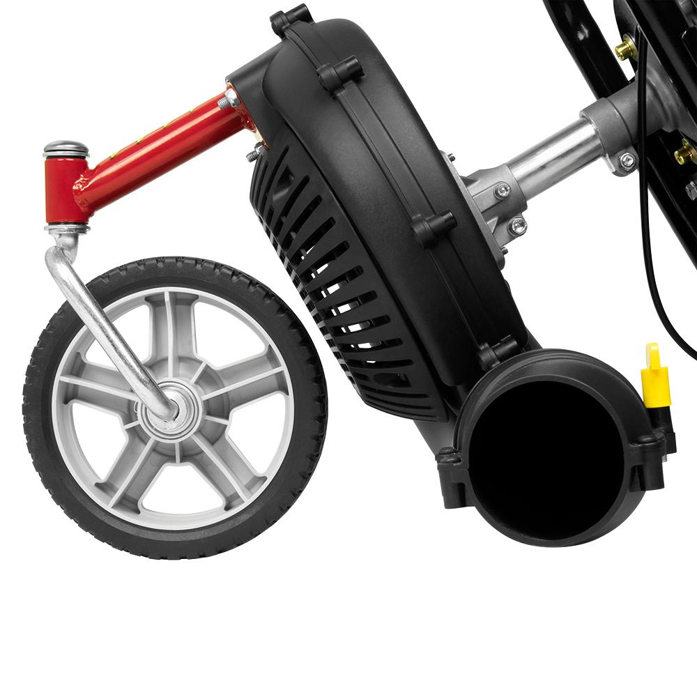 The Southland 2 Cycle 43 cc Wheeled Blower is designed to get the job done fast. The air speed of 170 MPH and air flow of 520 CFM makes cleaning up your driveway, sidewalk, or yard a breeze. The 7 in. spinner style lead wheel provides maximum maneuverability which makes clearing debris effortless. This blower features an ergonomic loop handle for user comfort and thumb throttle control to vary blowing force. Handle folds down for easy transport and storage. The Southland 2 Cycle 43 cc Wheeled Blower is the perfect accessory for cleaning up your outdoor space.