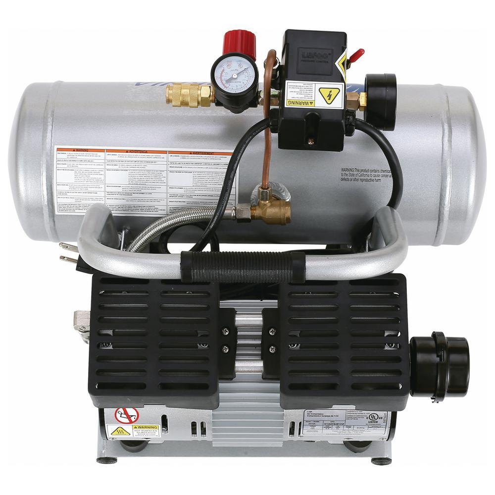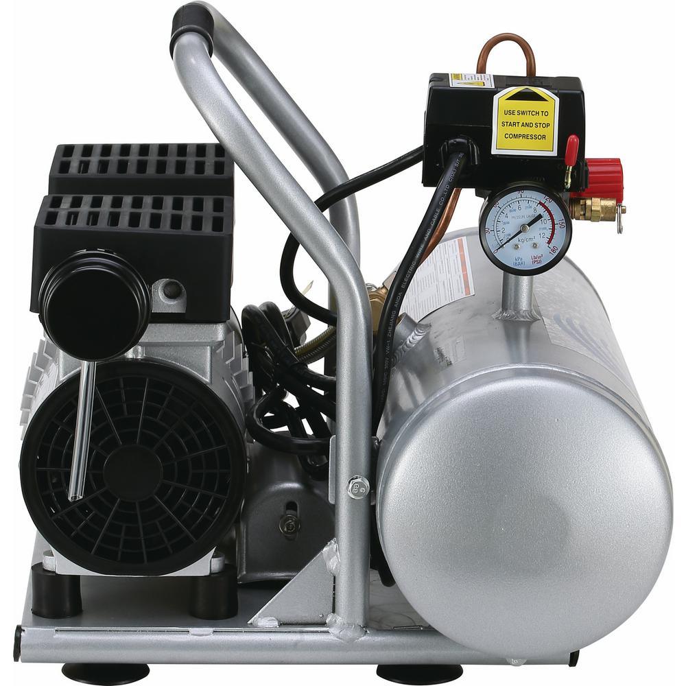 The California Air Tools2010AGK18 Ultra Quiet and Oil-Free Air Compressor is designed to be 1 of the quietest air compressors in the industry having only 60 decibels of sound. The powerful 1.0 motor operates at only 1680 RPM creating less noise and less wear. The Oil-Free Dual Piston Pump System is engineered for high performance and durability. The CAT-2010AGK18Air Compressorhas an Oil-Free Dual Piston pump designed to have a life cycle before wear of 3000 plus hours compared to other comparable air compressors with life cycles of 500-hours or less. The Oil-Free pump allows for use in a variety of temperatures and uneven terrains. The 2.0 Gal. Aluminum (Rust-Free) Air Tank is Lightweight (35 lbs.) and very easy to transport. The 25 ft. Hybrid Air Hose (included) is lightweight and very flexible. The air hose comes complete with 2 air fittings attached. These air fittings allow you to attach to the air hose to the air compressor and to the nail gun or other air tools. The 18-Gauge Brad Nail Gun (included) is designed for nailing trim, cabinetry and hobby/craft projects (3/8 in. - 2 in. brad nails). This air compressor is ideal for anyone working inside where noise is a major issue.