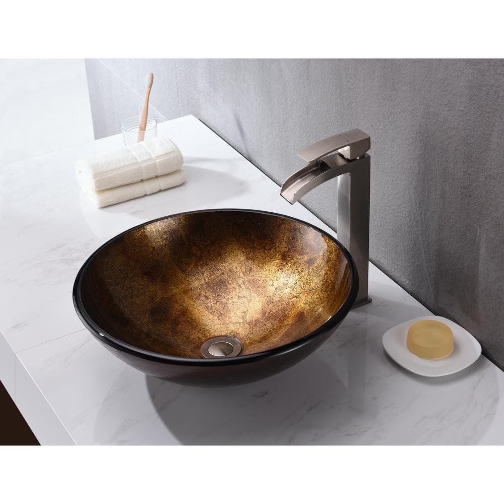 Like liquid amber captured in glass, the Jonas vessel bathes your vanity in a warm, golden glow. Its Autumn Dusk finish shimmers with depth, elevating a simple countertop into an artful tableau. Pair it with a tall brushed-nickel faucet and matte charcoal walls for a moody, gallery-worthy vignette. This is the luxe punctuation your bathroom deserves.