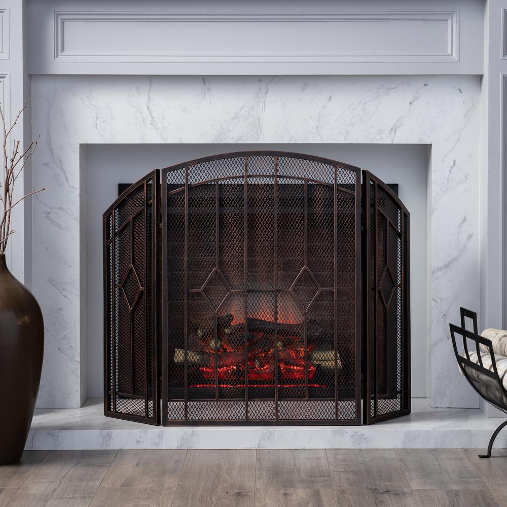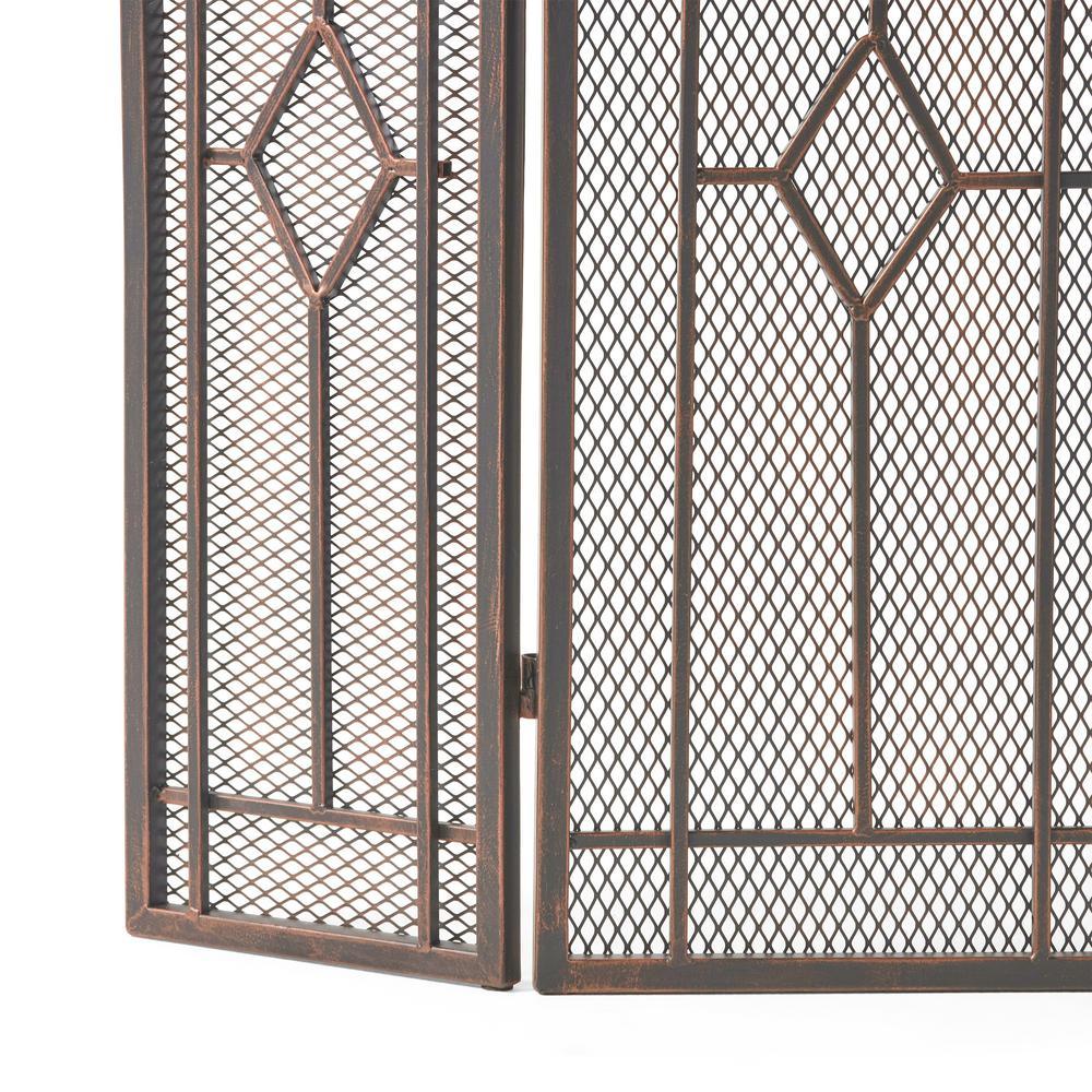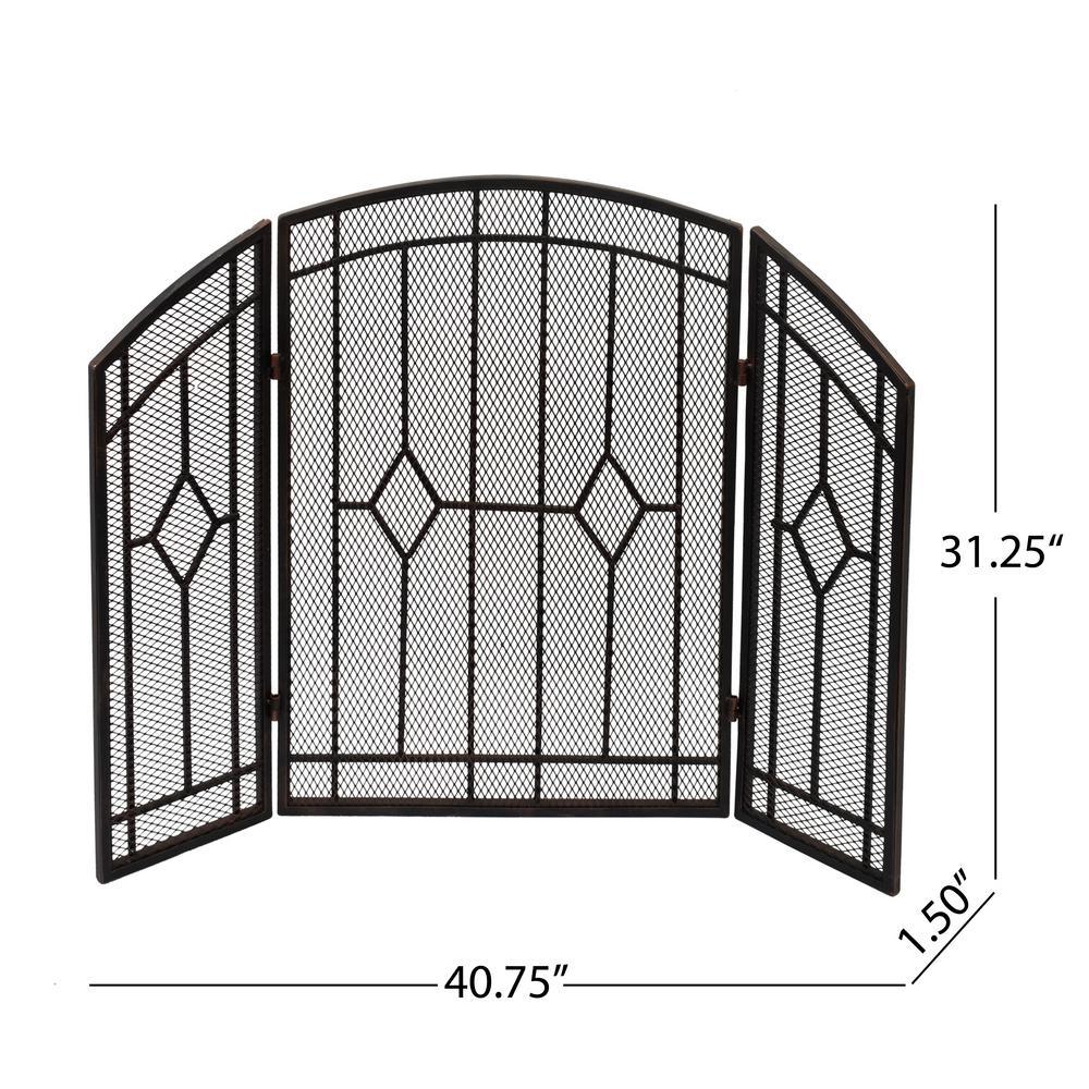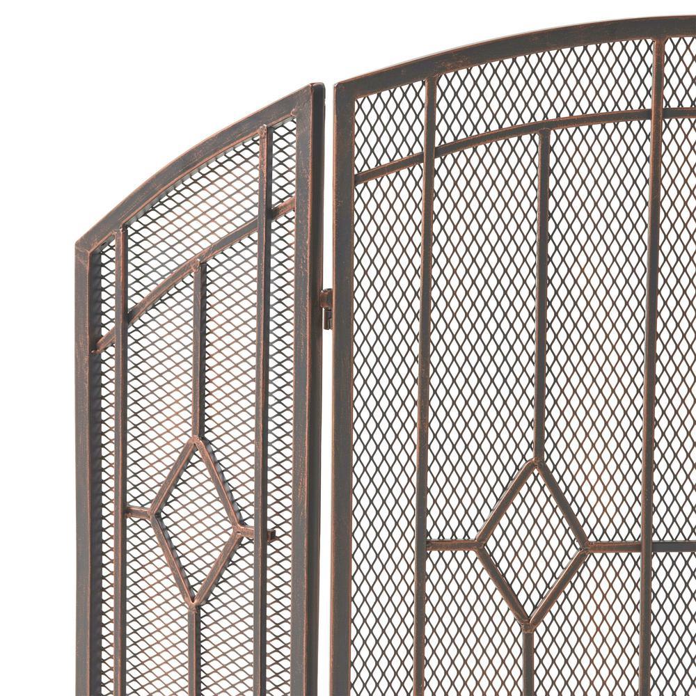 Gilmer Contemporary Black and Copper Three Panel Iron Fire Screen