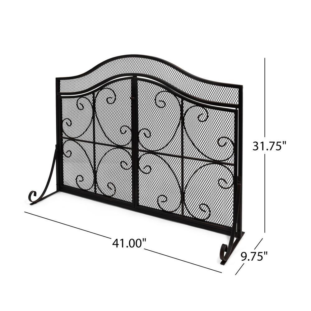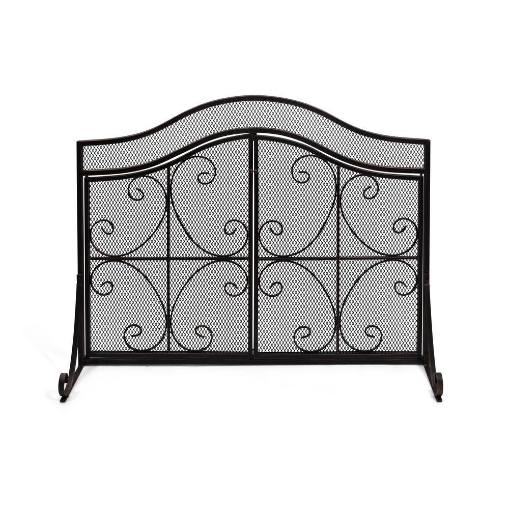 Stay warm on a cold winter evening while giving your interior space a polished accent piece. Our fireplace screen offers a sleek accent to your living room or bedroom while providing protection from hot embers or flying sparks with its fine mesh screen. This screen features two easy access doors, making this extremely convenient to use. With a graceful camelback frame and intricate scrollwork designed panels which highlights both functionality and style to give your home the best of the best.