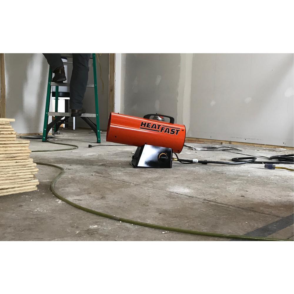 The HEATFAST HF125G 125,000 BTU Portable LP Forced-Air Propane Heater features electrical ignition and 3 heat settings with a convenient dial control. It is portable and offers a 125,000 BTU maximum capacity, sufficient to heat an area up to 2,600 sq. ft. It is also designed with the 5 Star Safety System featuring Flame Out Detection, Overheat Shut Off, Power Surge Protection, Blocked Inlet Shut Off, and Motor Thermal Protection. CSA listed. This heater is perfect for jobsites, garages, workshops and other spaces where additional heat is needed. It is easy to hookup and operate and very portable.