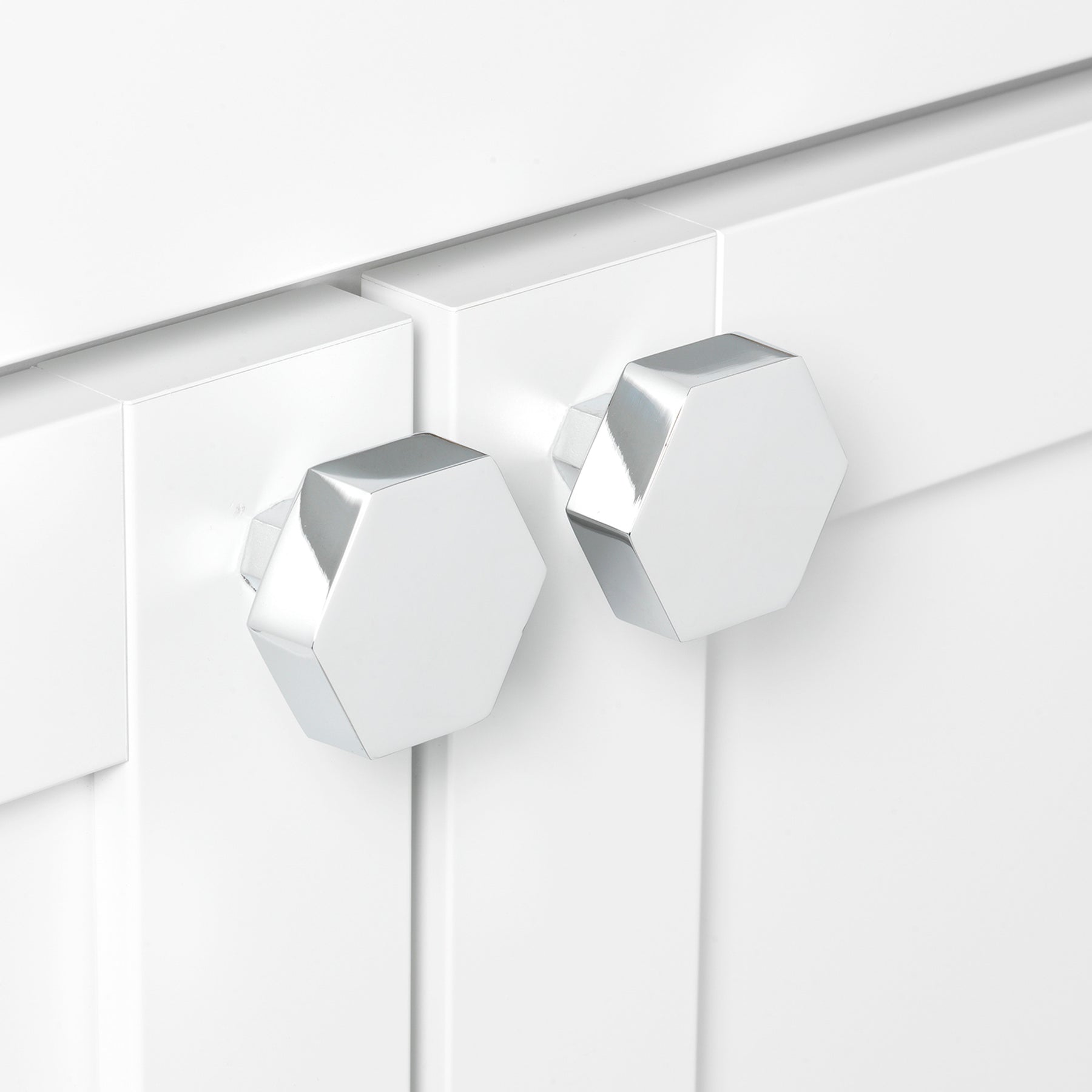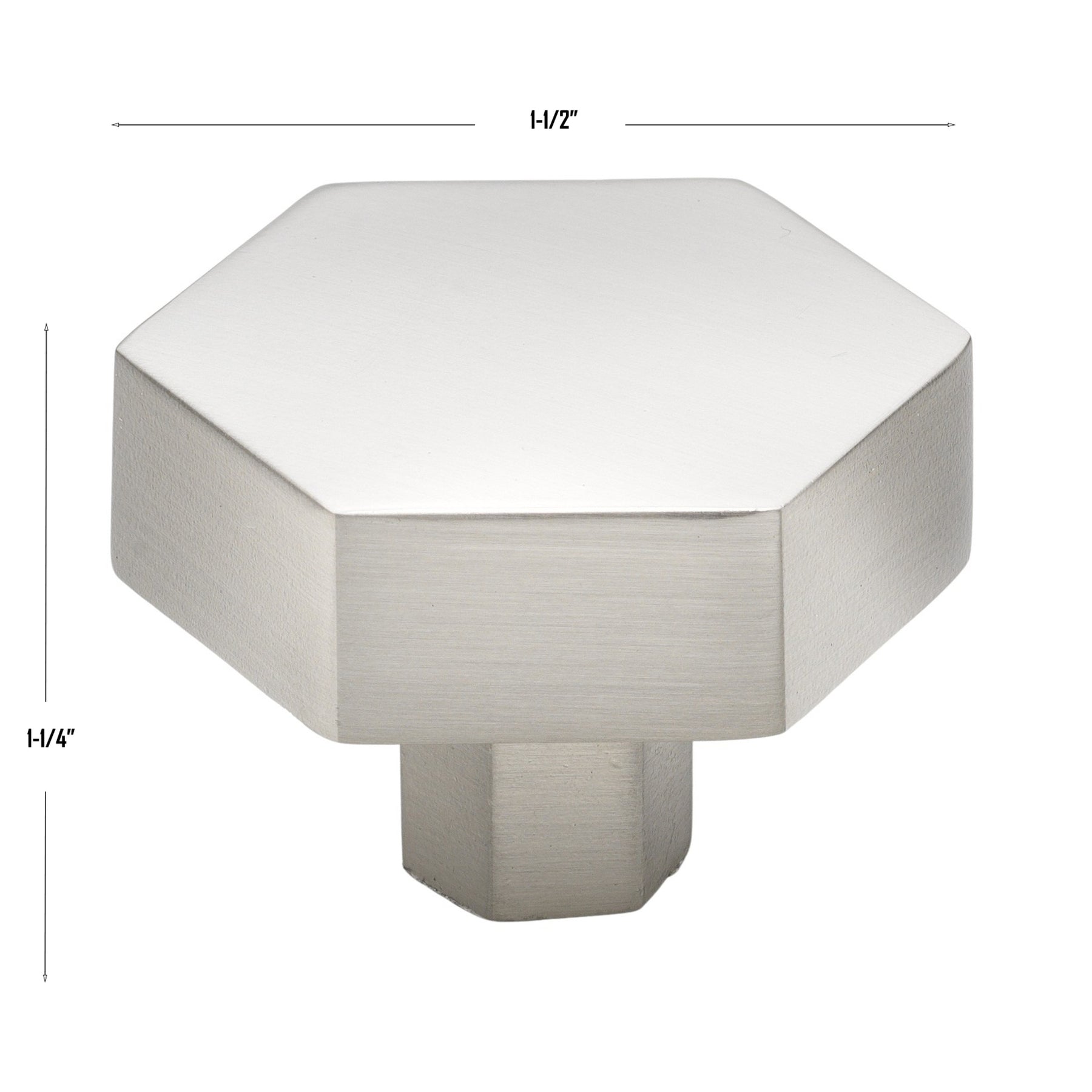 Heavy-weight solid zinc hexagon knobs deliver a crisp, modern look with an easy-to-grip profile. Designed for cabinetry and drawers, each 1-1/2 in. knob includes mounting screws for quick installation.