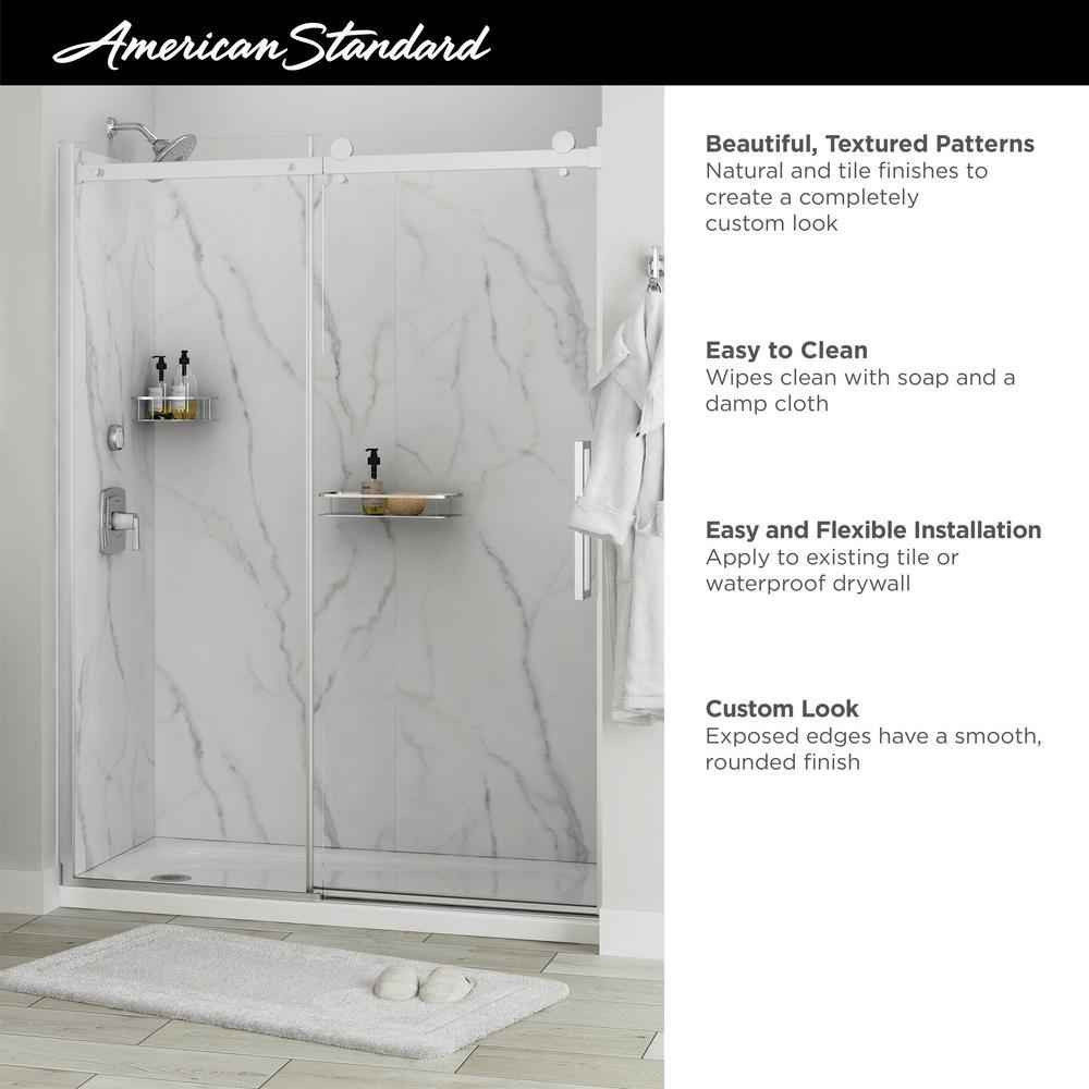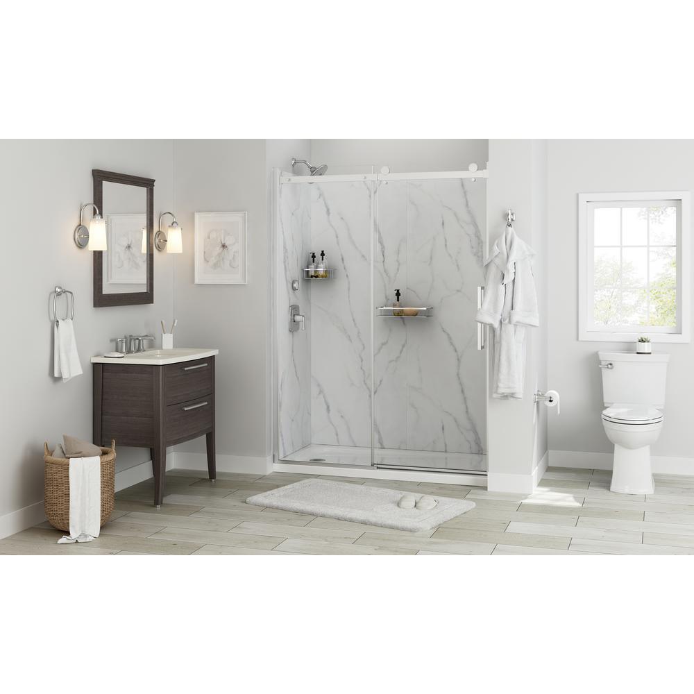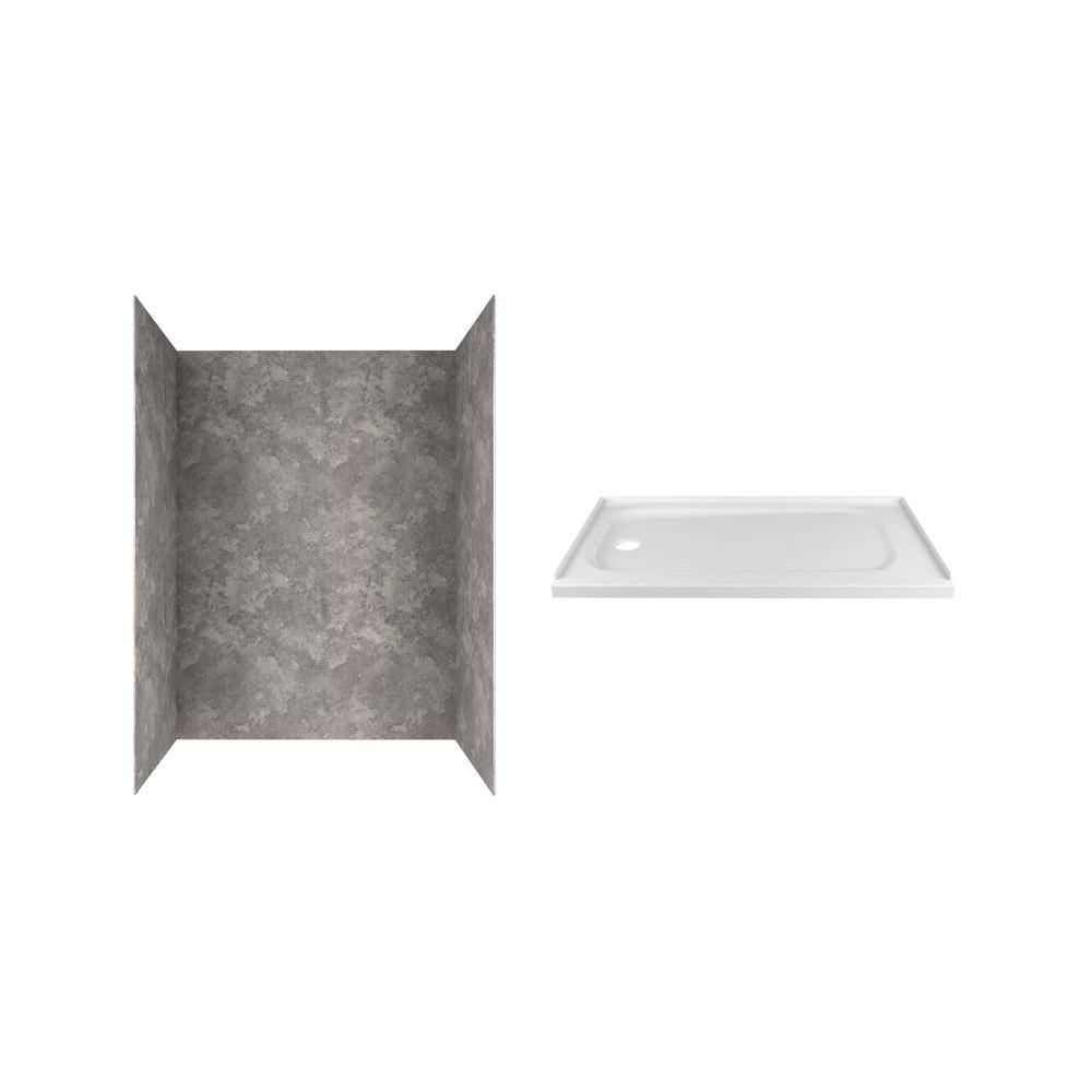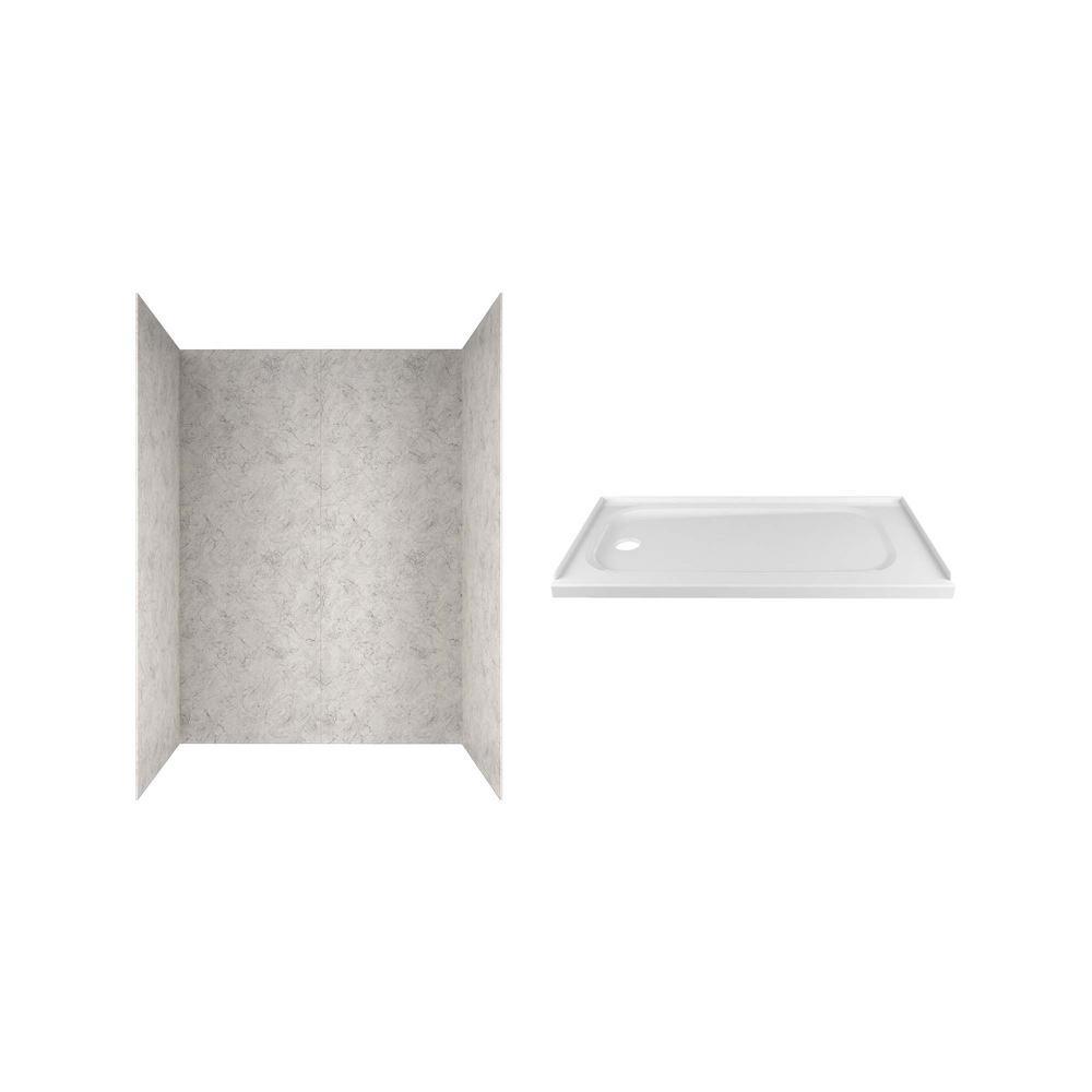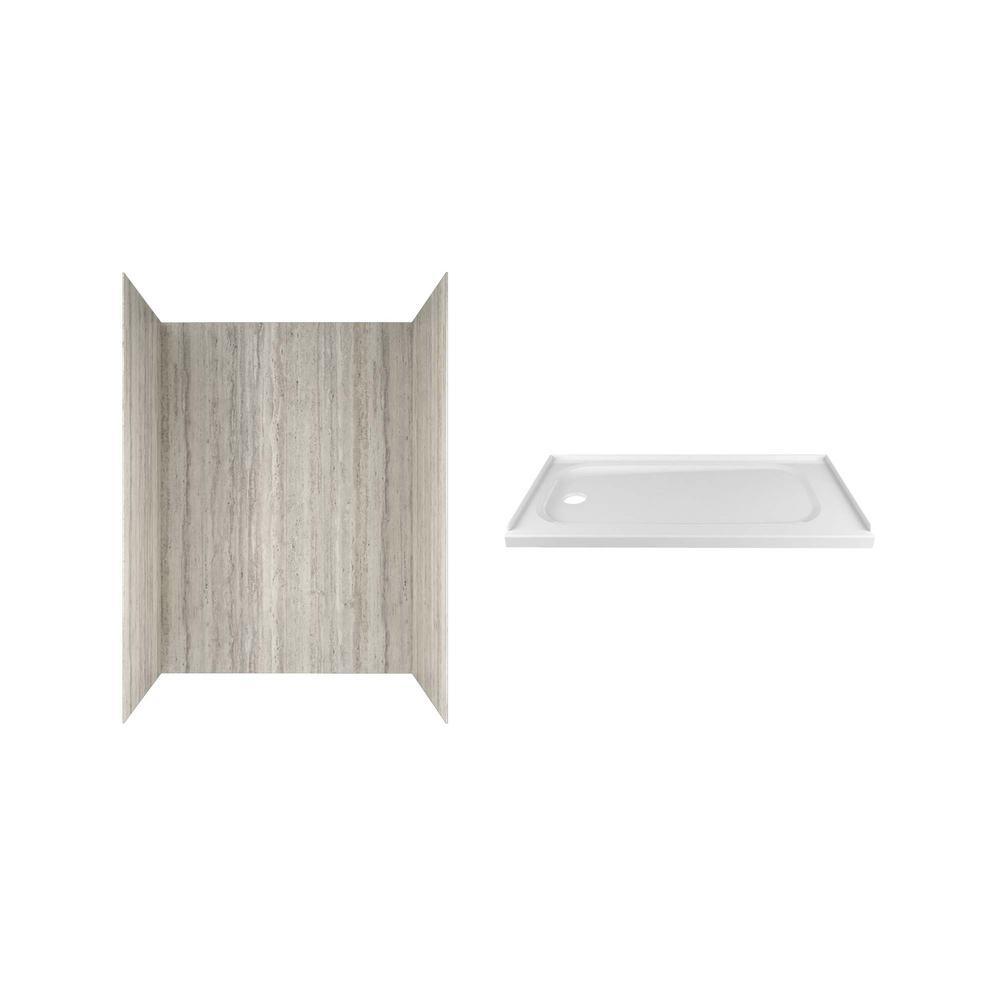 Give your bathroom a fresh update with the Passage Custom Shower Kit, complete with Pewter Travertine 4-piece patterned shower walls and shower base. Easy to install, these durable, pre-cut panels adhere securely to wall-board and feature beautiful, natural finishes for a realistic look without the mess of grout. The Passage single, low-threshold shower base is durable and easy to clean, and the perfect size to convert an existing 60 in. x 32 in. bathtub into a shower.