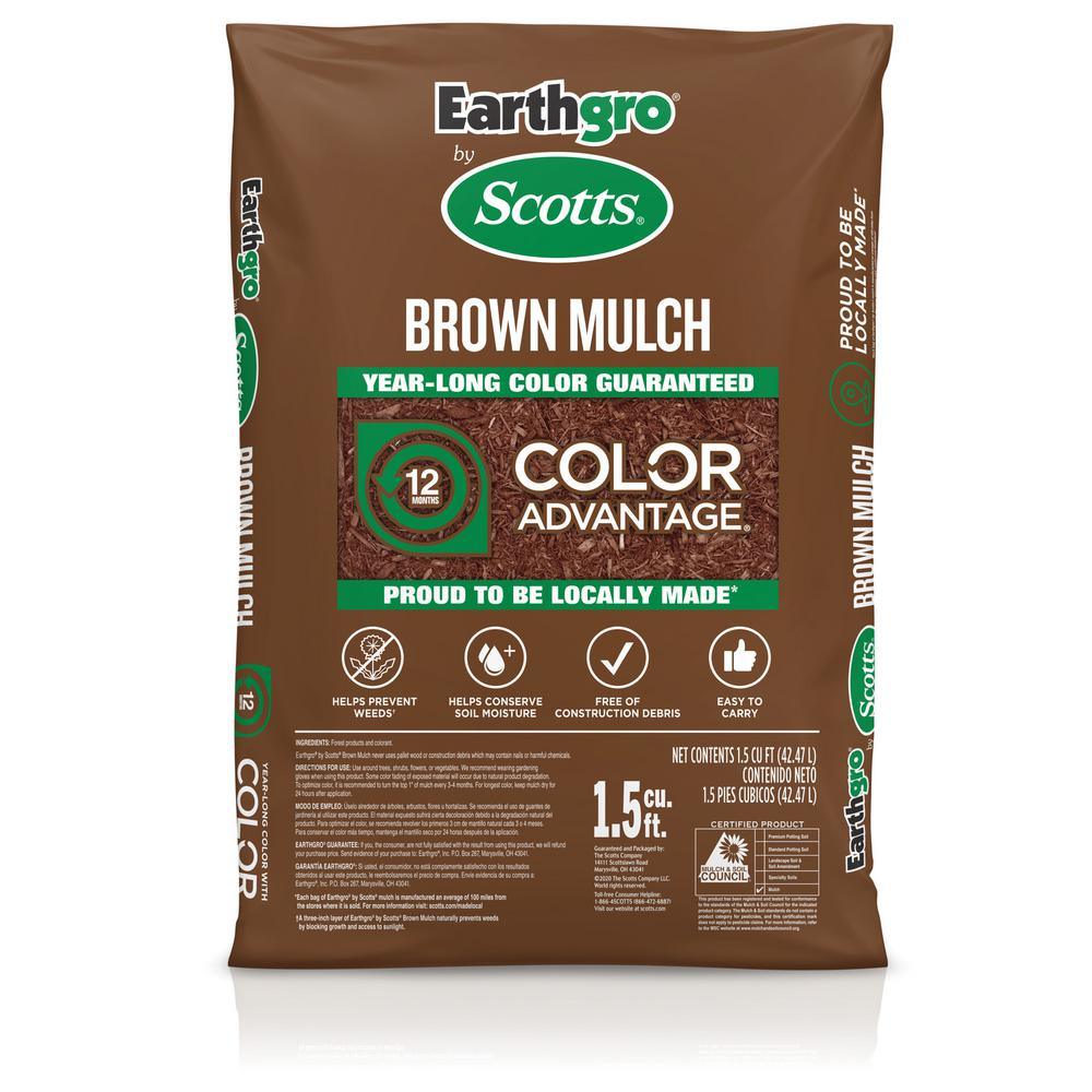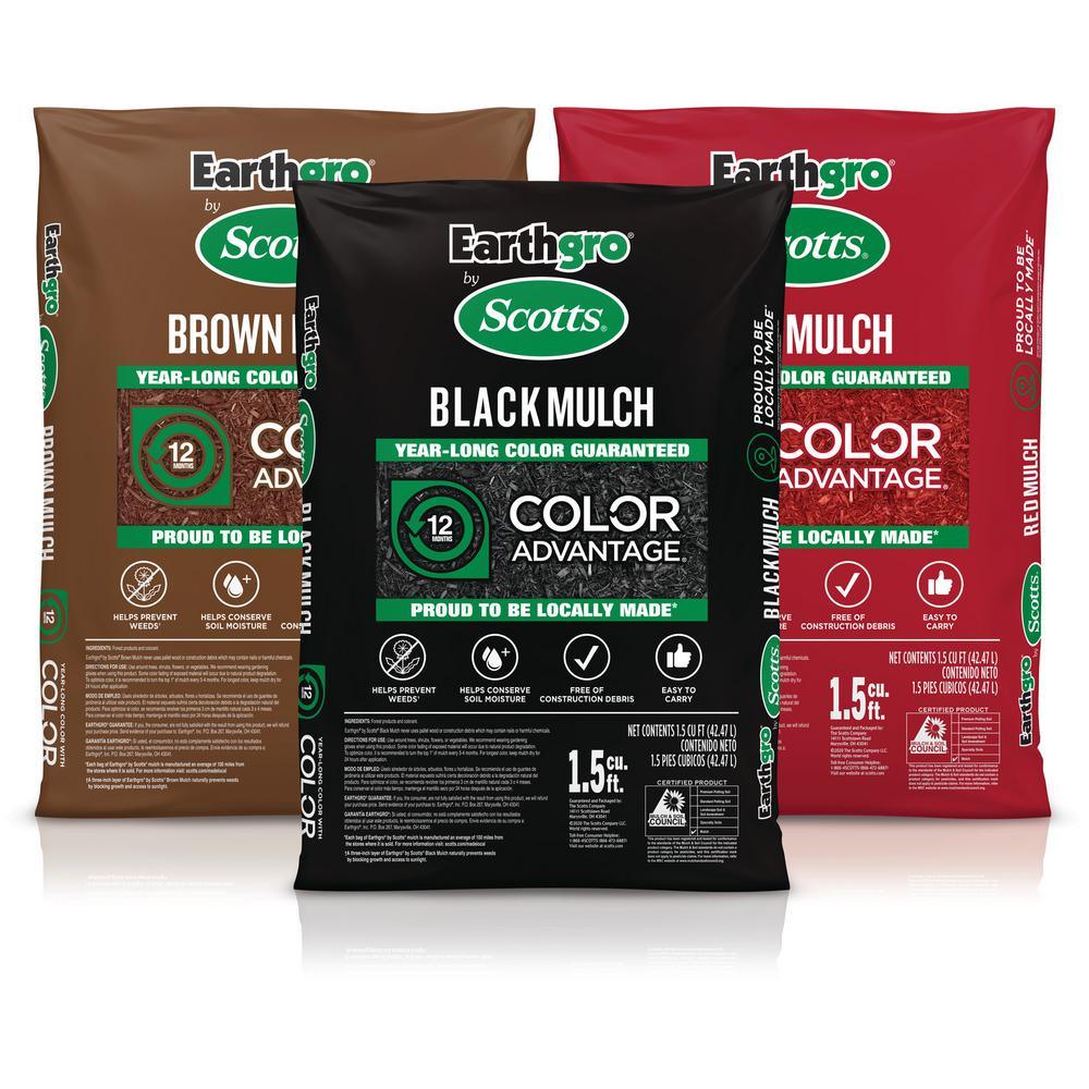 Earthgro by Scotts Mulch is formulated with Scotts Color Advantage to ensure rich, vibrant color that lasts throughout the year. Made from natural forest products, this mulch is designed to conserve soil moisture, regulate soil temperature, and naturally prevent weed growth by blocking sunlight when applied at a 3-inch depth. For optimal color retention, allow the mulch to dry for 24 hours after application and turn or rake the top 1 inch every 3-4 months. With Color Advantage, your landscape will maintain its beautiful appearance while also keeping weeds at bay. Additionally, the shredded wood composition of this mulch aids in preserving soil moisture and moderating temperature.