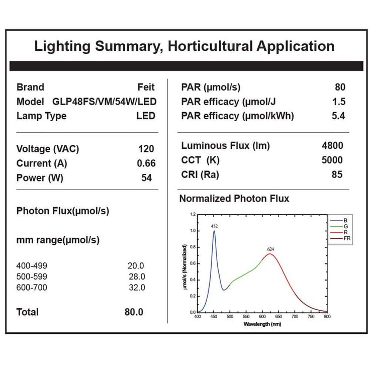 Grow better, stronger plants with the Feit Electric GLP48FS/VM/54-Watt/LED four-foot full spectrum grow light fixture. Rated for high humidity, this plant light is ideal for soil or hydroponic gardens, assisting all phases of indoor plant growth. Full spectrum wavelengths promote photosynthetic response, with bulbs integrated directly into the fixture taking away the chore of replacing them. Each lightweight fixture is linkable with up to eight total, and comes with a 5 ft. plug in. cord and a 6 in. hanging wire harness. Our energy-efficient LED grow lights last 25,000 hours / 22.8 years and put out little heat, saving your crop from burn damage. Choose a no humming, dependable grow lighting fixture for your hydroponic needs.