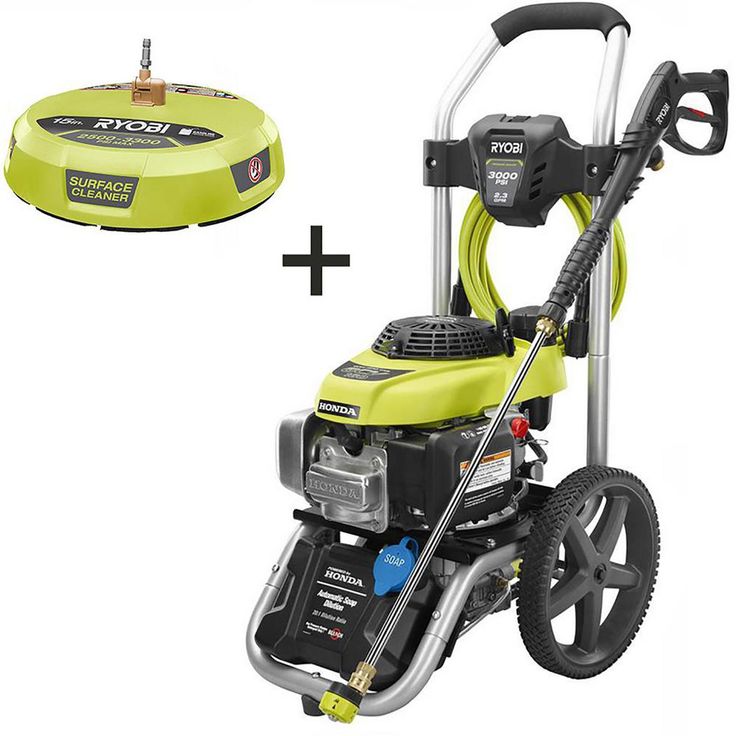 The RYOBI 3000-PSI Pressure Washer is engineered to handle even your toughest jobs. With a powerful Honda GCV160 gasoline engine, this RYOBI Pressure Washer delivers 3000-PSI of force for quick cleaning of driveways, decks, windows and other areas around the house. Featuring a durable, compact frame design and large 12 in. flat-free wheels this pressure washer is designed for easy transport. The 35 ft. non-marring high pressure hose provides 40% longer reach for access to even the toughest areas. The on-board detergent tank offers hassle-free cleaning by eliminating the need to drag a bucket and hose behind you. For added convenience, the RYOBI 3000-PSI Pressure Washer is equipped a 5-in-1 quick-change-over nozzle for versatile cleaning. This pressure washer is backed with the RYOBI 3-year limited warranty and is guaranteed to deliver results for years to come. Also included, the RYOBI 15 in. Gas Surface Cleaner is the ideal choice for hard surfaces like driveways, patios and sidewalks. This time saving accessory cleans up to 4X faster than a standard nozzle, with rotating jets that give you a large, streak-free cleaning path. The surface cleaner has a 1/4 in. quick connect that easily attaches to your pressure washer, allowing you to move quickly between jobs. The RYOBI 15 in. Surface Cleaner is compatible with most gas pressure washers between 2500 psi and 3000 psi.