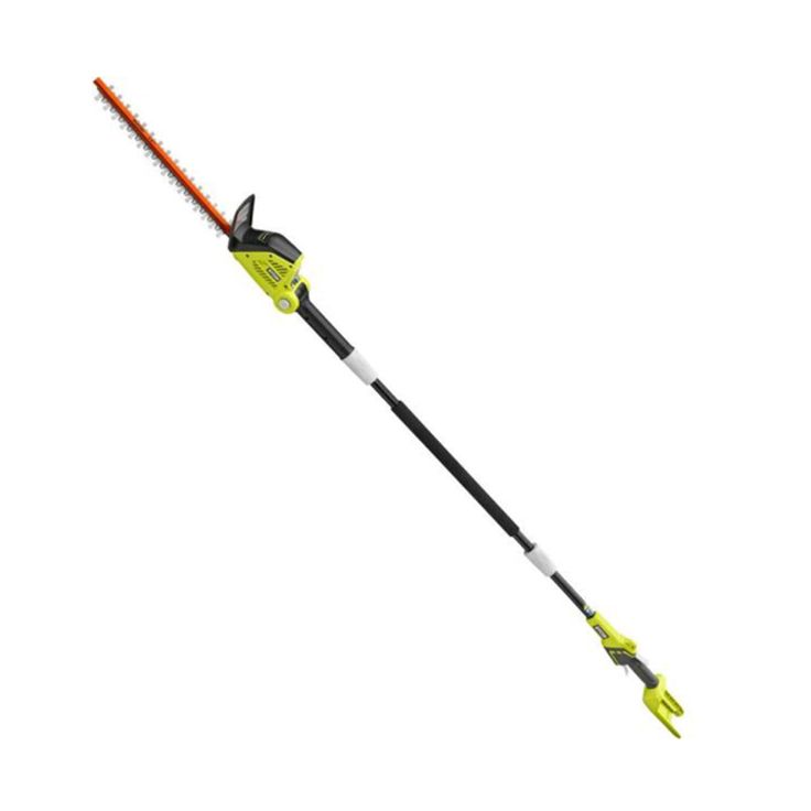 The RYOBI 40-Volt Pole Hedge Trimmer is ideal for any hedge maintenance around the house. The pivoting head allows for trimming at multiple angles and optimized cutting performance. Designed to reach greater heights you can extend the pole up to 8 ft. The 40-Volt Pole Hedge Trimmer is equipped with 18 in. dual-action blades and a 5/8 in. cut capacity. Back by a 5-year warranty.