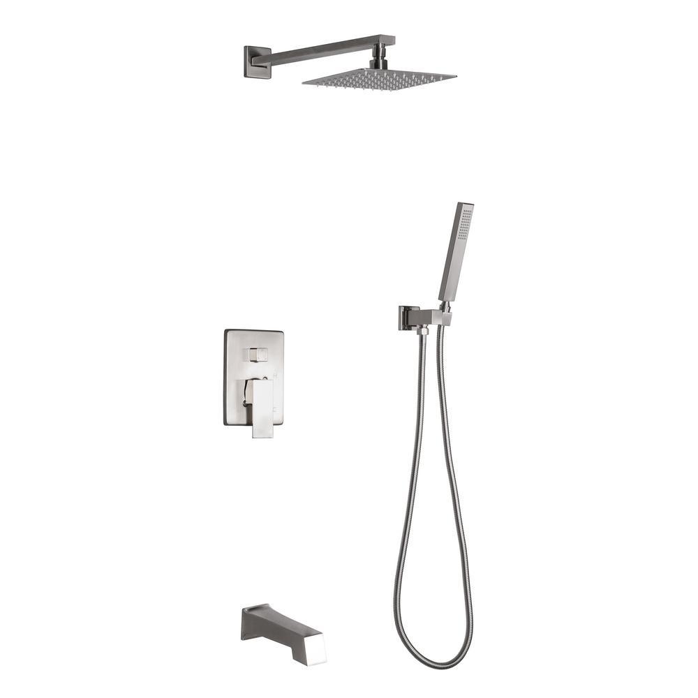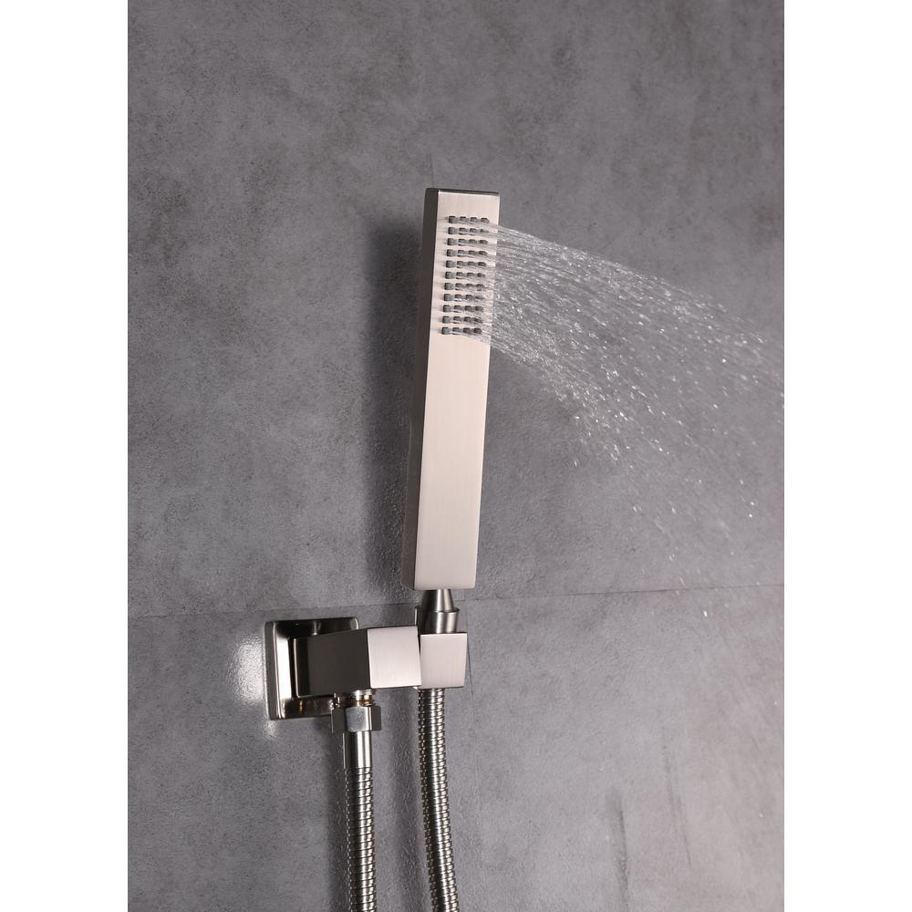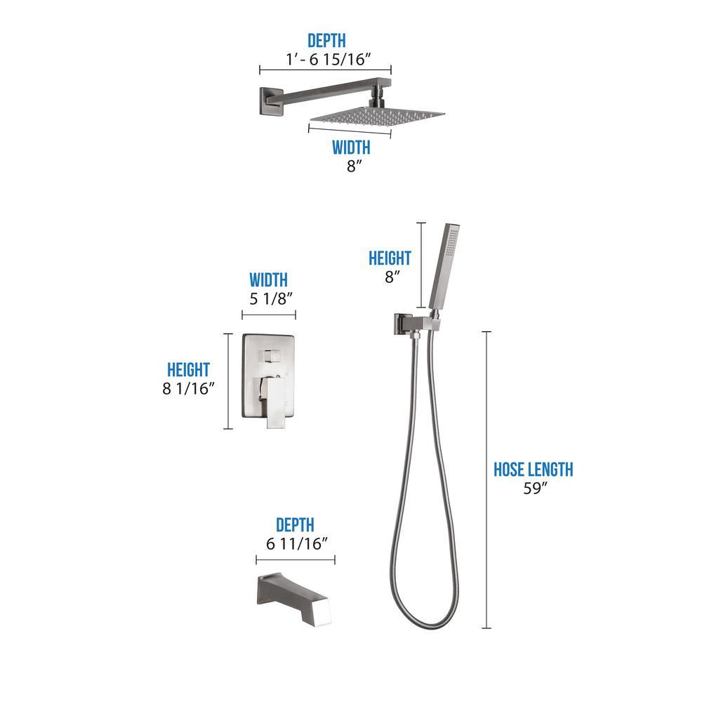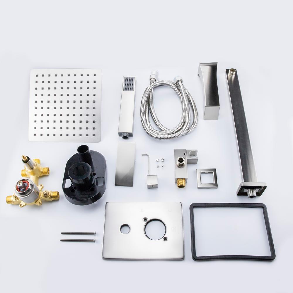 Convenient and extremely functional, the Talise Shower Faucet System was designed with the user in mind. A premium finish to complement any decor, stainless steel construction for durability and multiple settings to give you more control, all work to elevate your showering experience to higher level of comfort. Note: Shower arm/head/hose: stainless steel brass valve with / SS trim (zinc alloy handle)tub spout: zinc alloy hand shower: ABS (plastic).