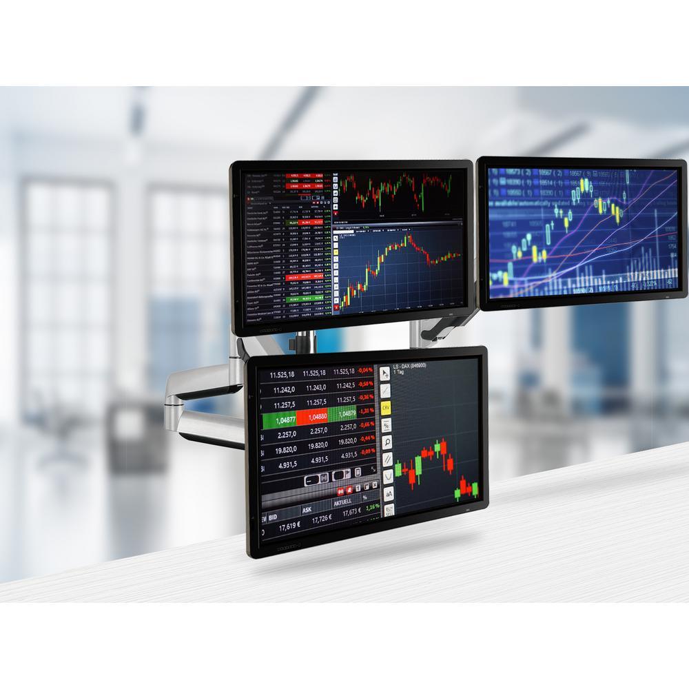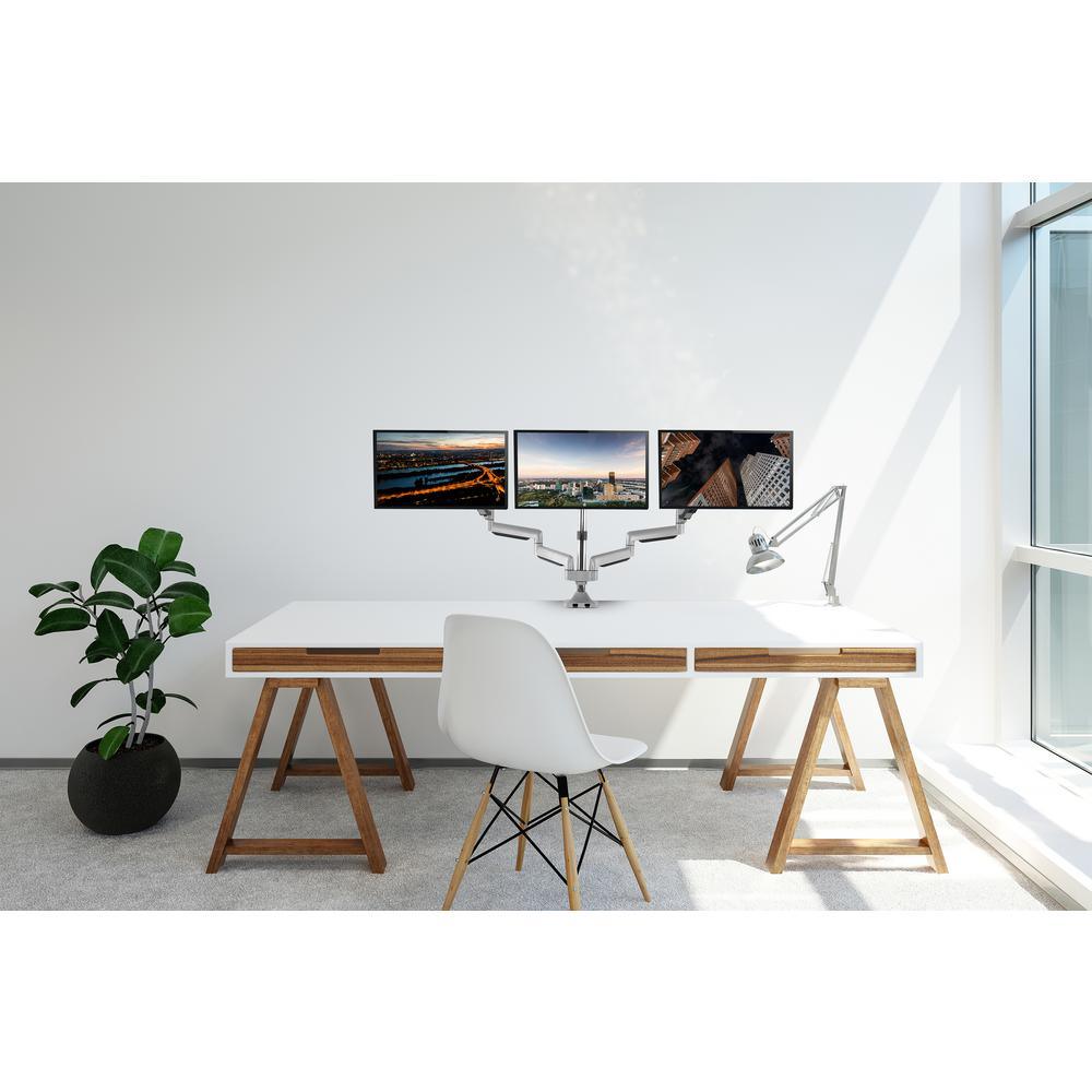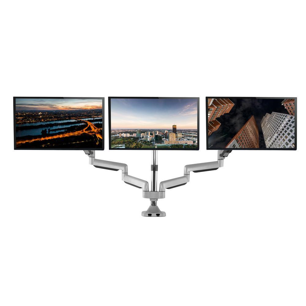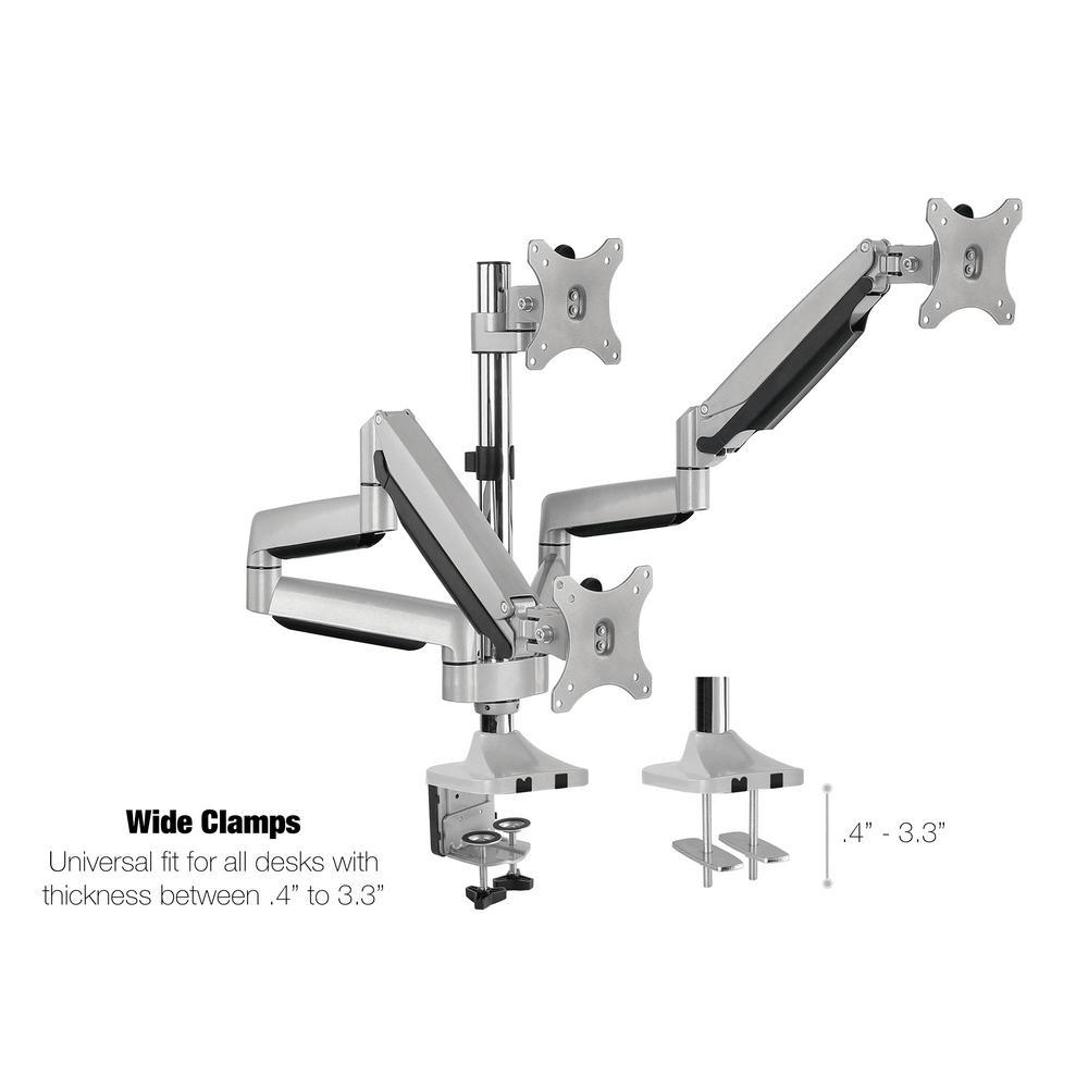 13 in. x 30 in. Silver Triple Arm Monitor Vesa Mount Full Motion Swivel Articulating Gas Springs
