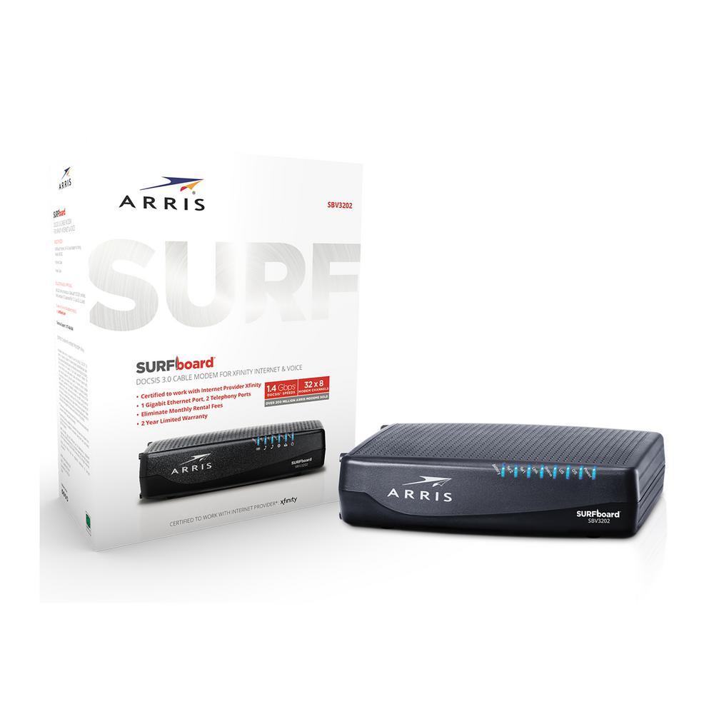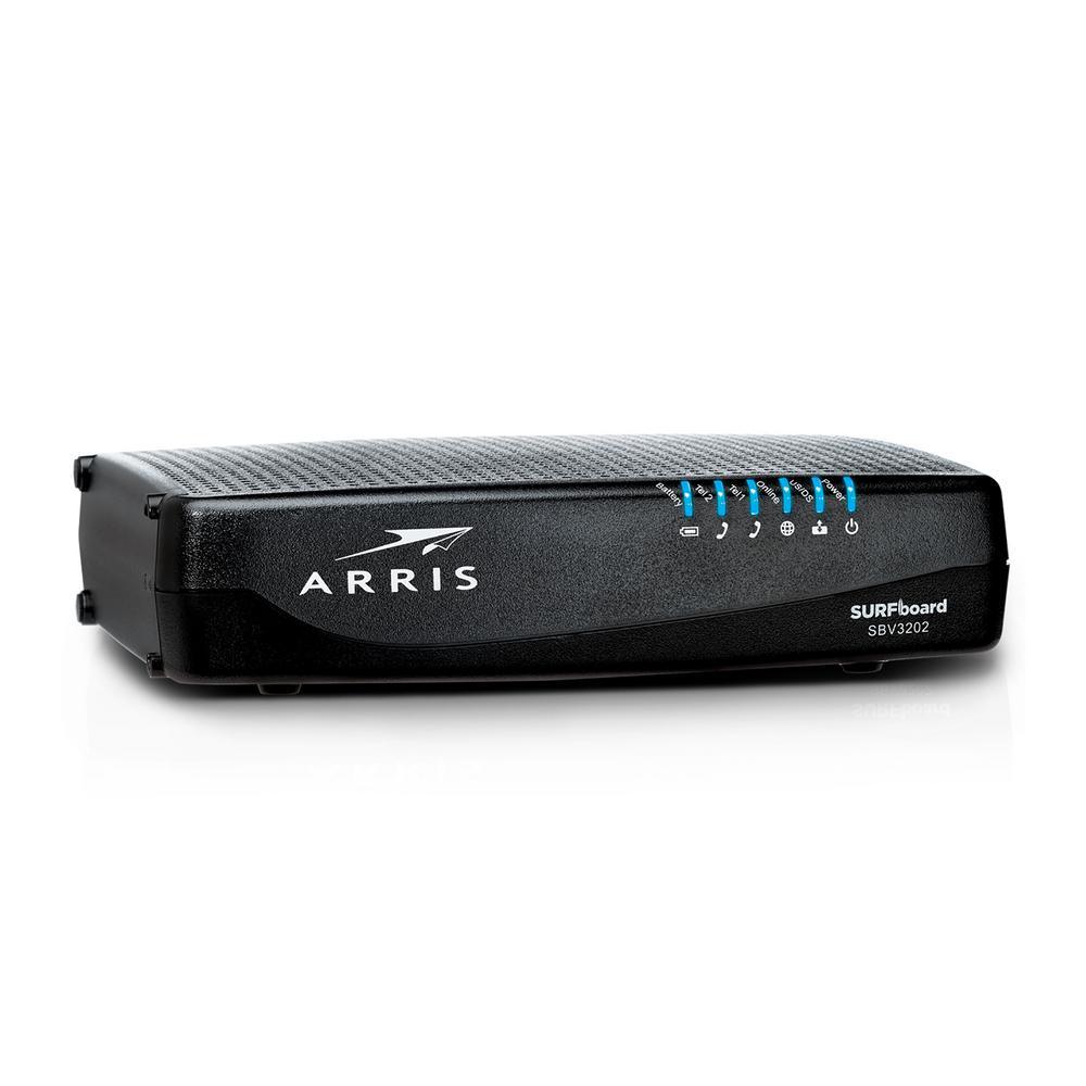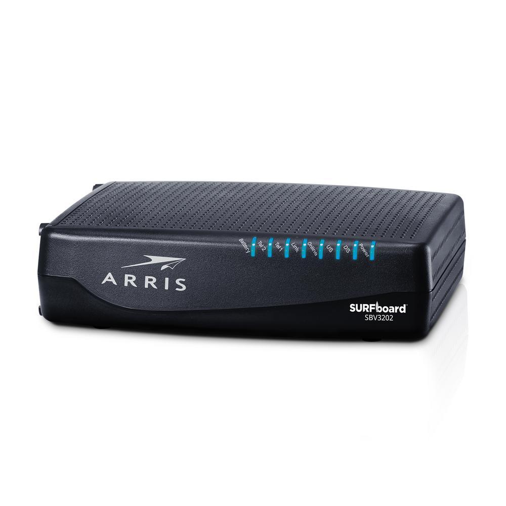 The SBV3202 is a telephony modem designed for XFINITY customers desiring to own their device. Using DOCSIS 3.0 technology The SBV3202 provides high-speed data service using bonded send and receive channels for greater bandwidth. The SBV3202 includes 2 voice ports for 1ST and 2nd line telephony services. A battery backup option is available to provide emergency services in the event of a power outage in the home. Using multi-processor technology, the SBV3202 can achieve high bandwidth performance without affecting voice quality, A historical ARRIS product standard for the best in service performance. With DOCSIS speeds up to 1.4 Gbps, two lines of Voice over IP, and multiple battery back-up options, the SBV3202 offers your home or small business the performance you need.