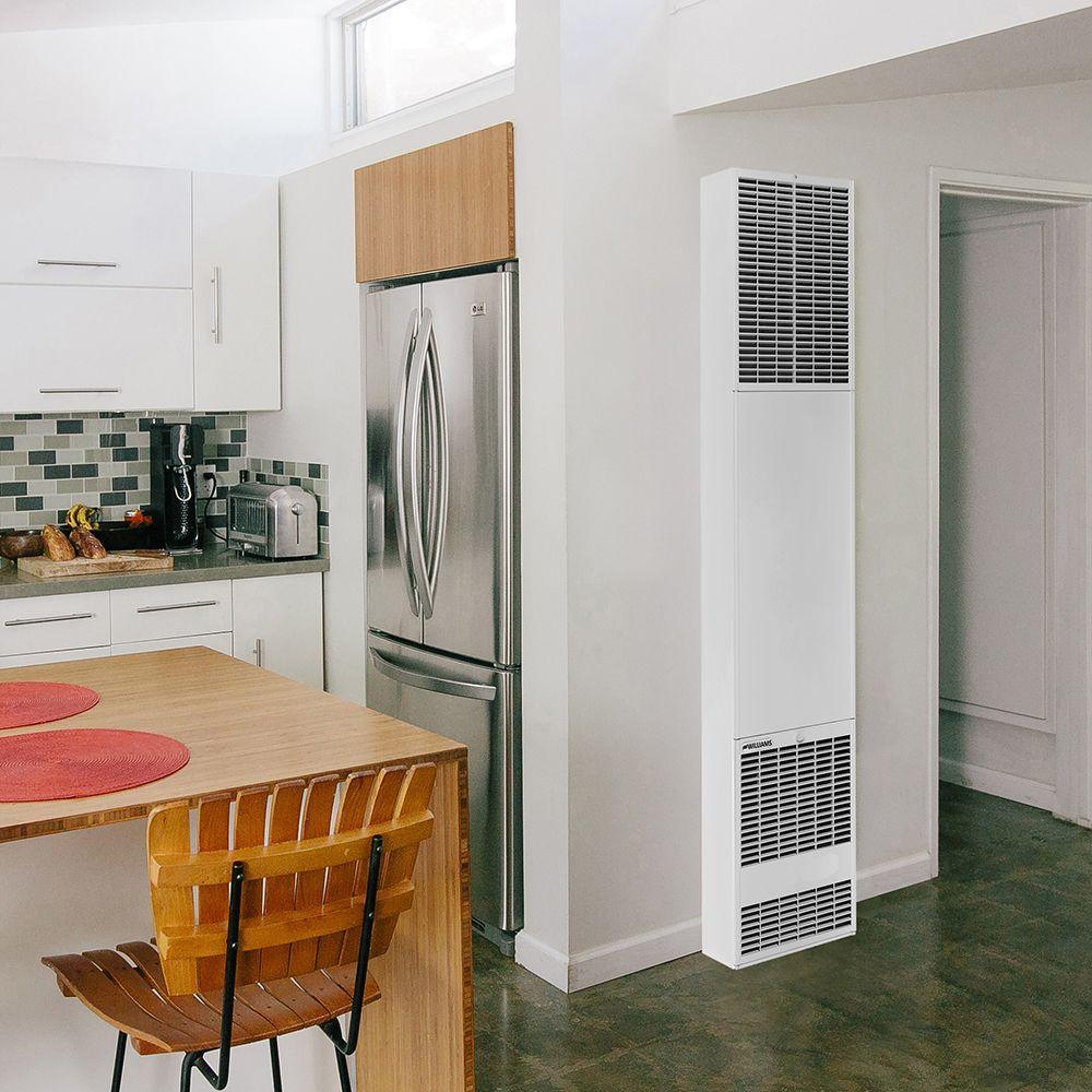 Williams' Forsaire is equipped with a counterflow blower system that receives air at ceiling level, warms it and quietly delivers it at floor level. They may be recessed into the stud space or surface mounted and vented vertically through the ceiling and roof. Ideal for homes, apartments, offices, schools, cabins and many other applications.