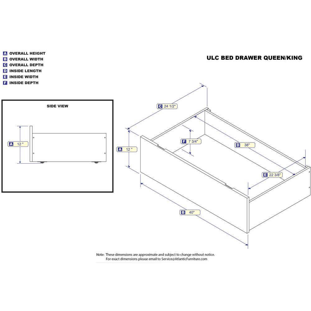 With a modern, minimalist design, Atlantic Furniture's Urban Bed Drawers are a sleek addition to any home. Equipped with independent non-marking rollers, these matching under-bed drawers glide freely over both wood flooring and carpet. Comes with one set of two storage drawers. Constructed using sustainably sourced hardwood.