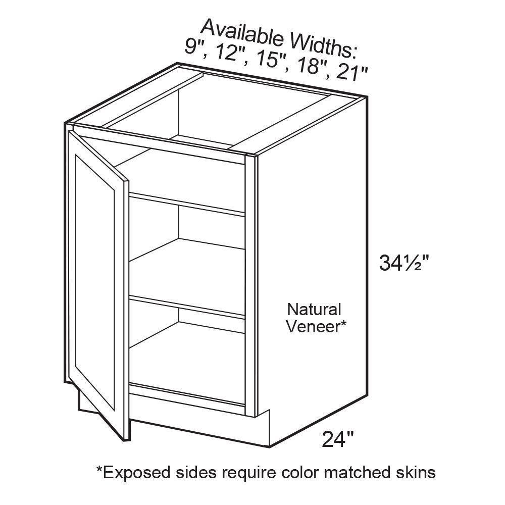 Base cabinets feature an integral toe kick for added strength and bottom shelf support