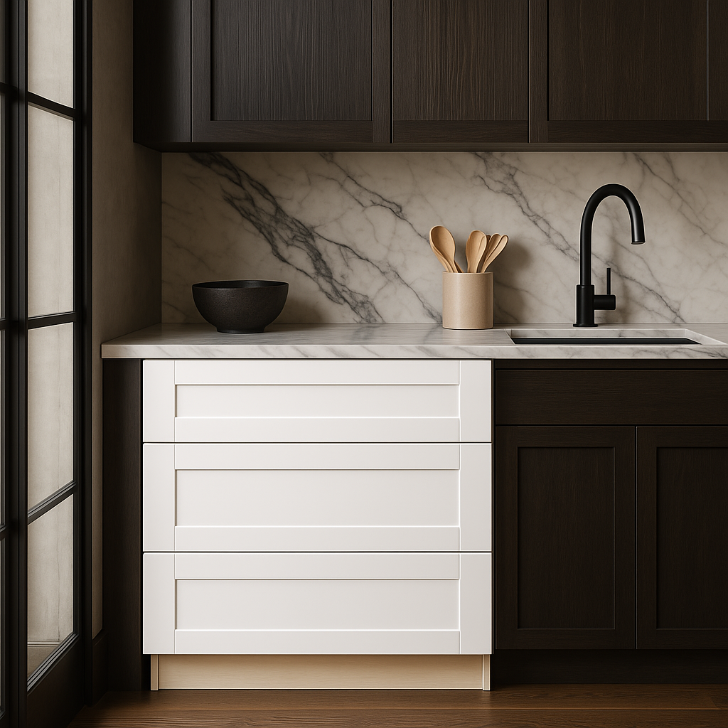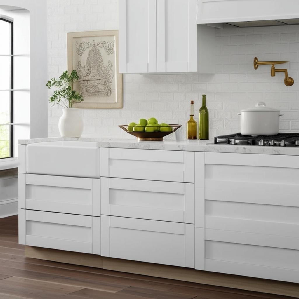 - Shaker Style Design: Shaker-inspired doors with square recessed panels for a classic and modern look.