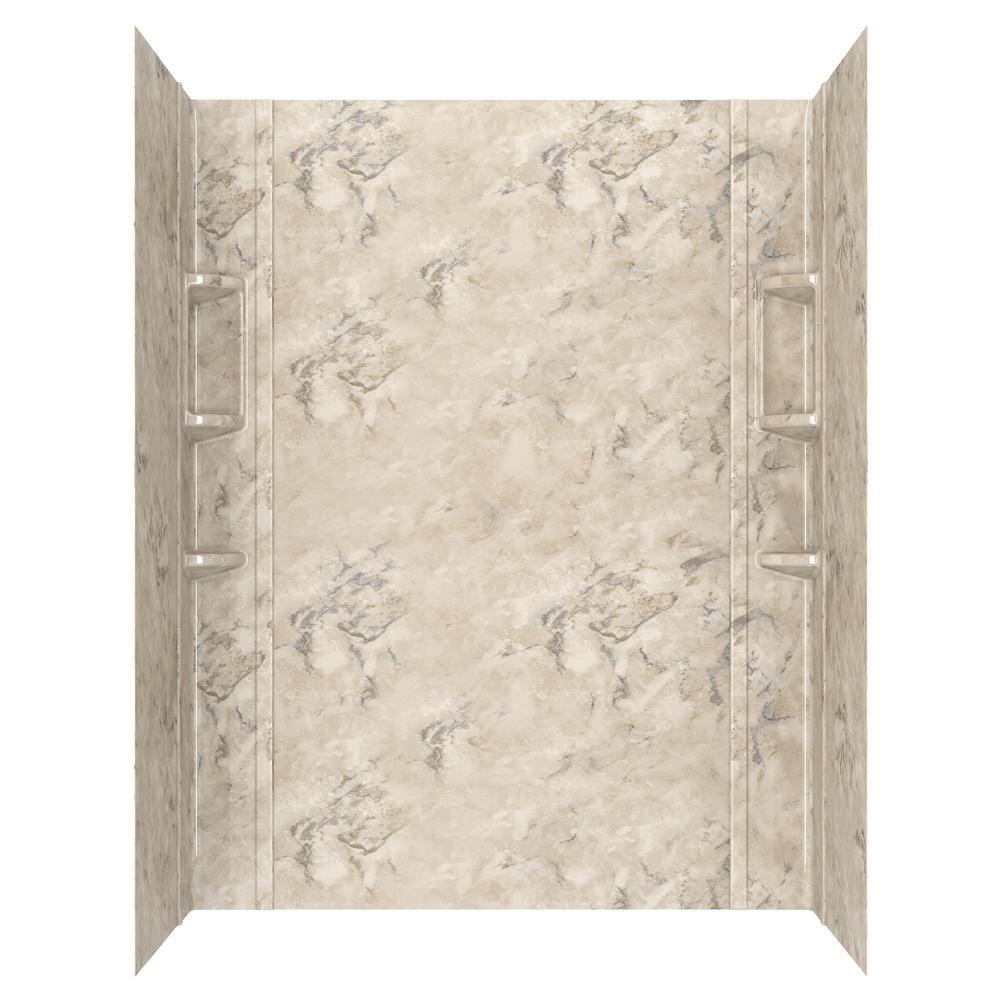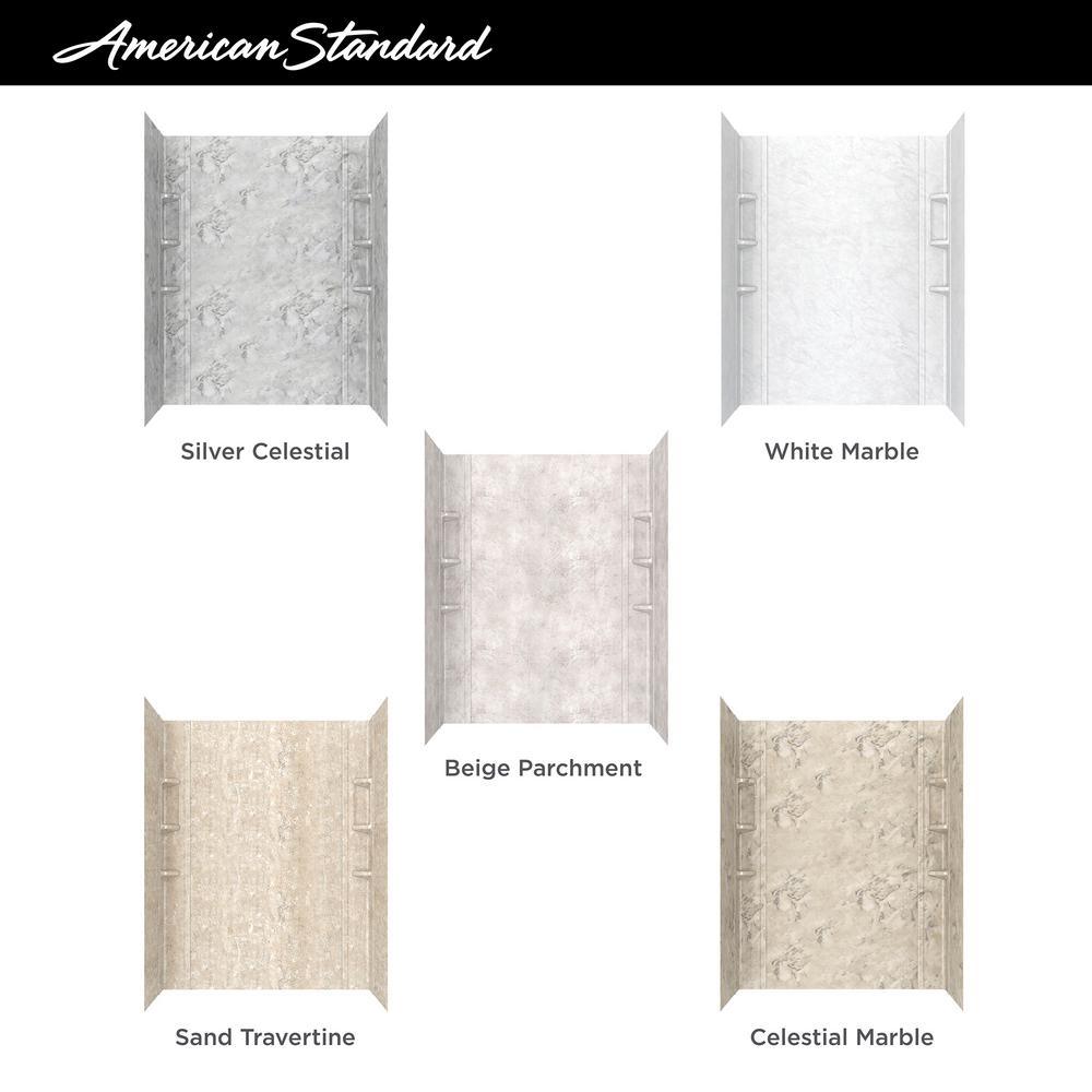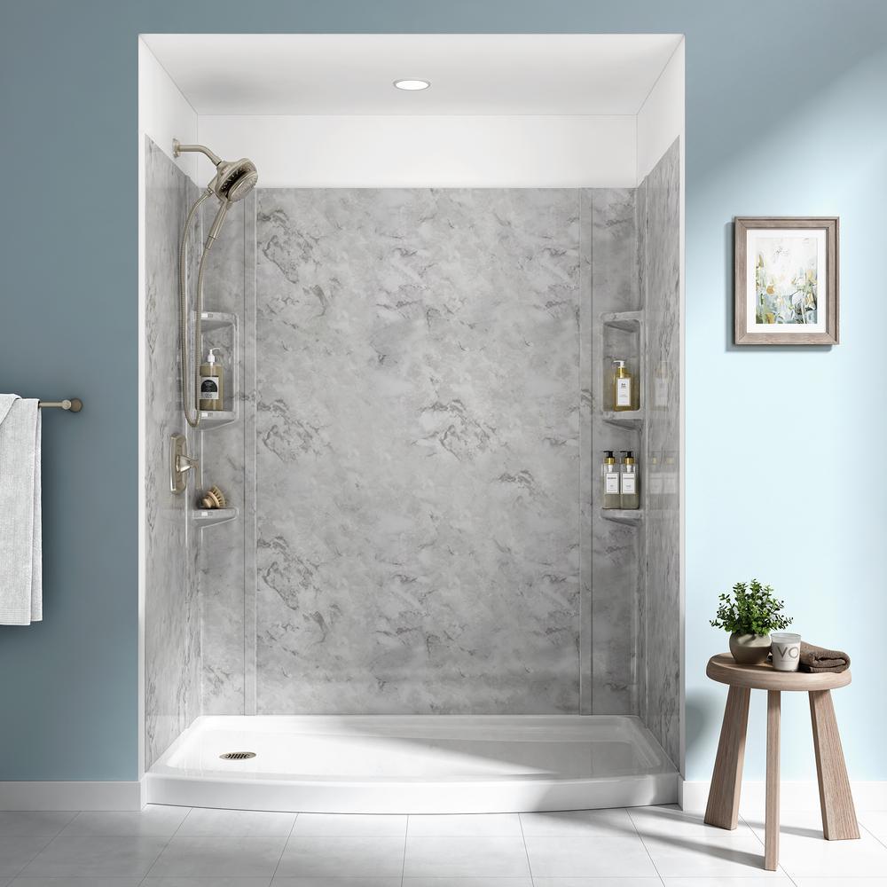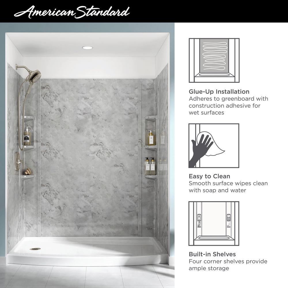 Freshen up your bathroom with the Ovation 5-Piece Glue-Up Shower Wall Set from Standard. Pre-measured and easy to trim for an exact fit, this high-gloss acrylic shower wall set adheres directly to green board. Corner units feature handy molded-in shelves to keep bathing essentials within reach.
