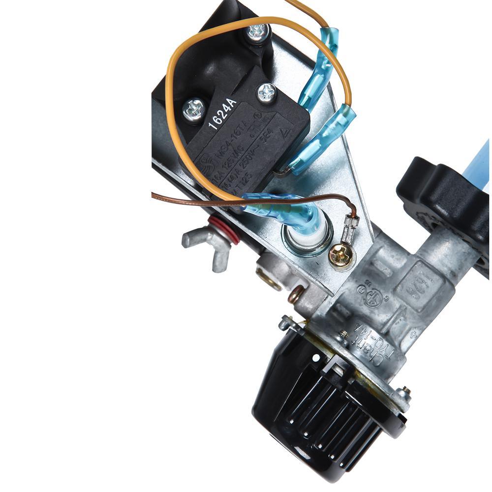 Safety shut-off valve, tip-over switch, and chrome emitter guard