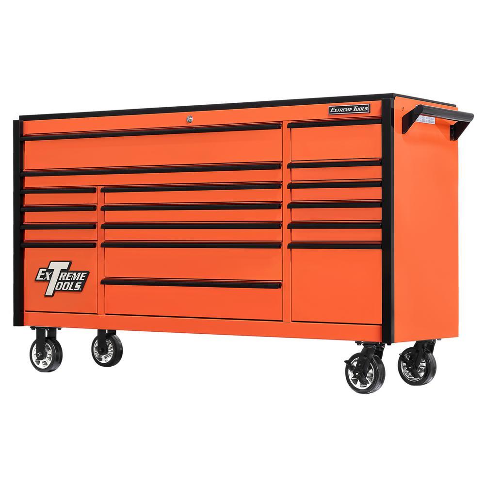 Extreme Tools DX Series DX722117RC 72 in. 17-Drawer Roller Cabinet is the perfect tool box for providing loads of storage space to meet your needs. This high-quality tool box features 2 extra-long drawers. Patent-pending, self-latching DX Quick Release drawer pulls keep drawers closed even if you are moving your tool box. Each drawer uses ball bearing slides that let you load 100 lbs. to 200 lbs. per drawer (drawers with double slides.) Our huge roller cabinet gives you loads of space at an affordable price with the assurance of Extreme Tools quality.