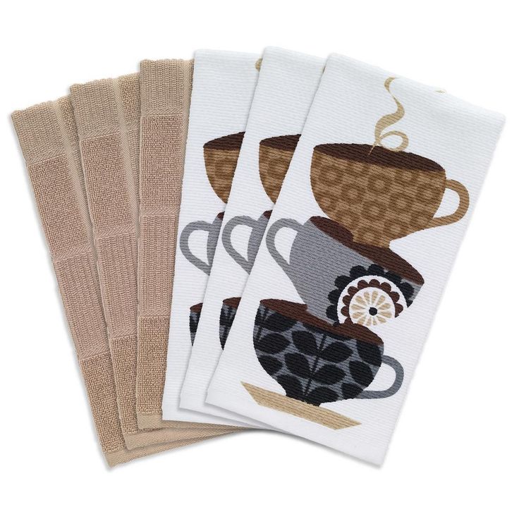 T-fal Multicolor Coffee Cups Cotton Print Dual and Solid Kitchen Dish Towel (Set of 6)
