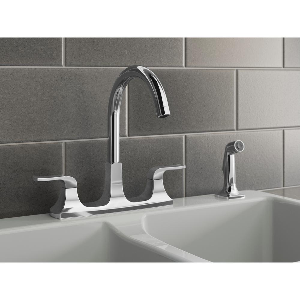 With a unique combination of sleek curves and geometric angles, the Rubicon faucet brings a fresh, clean look to the kitchen. A sturdy, simple design makes this faucet easy to operate and easy to clean. It comes with a lifetime limited warranty.