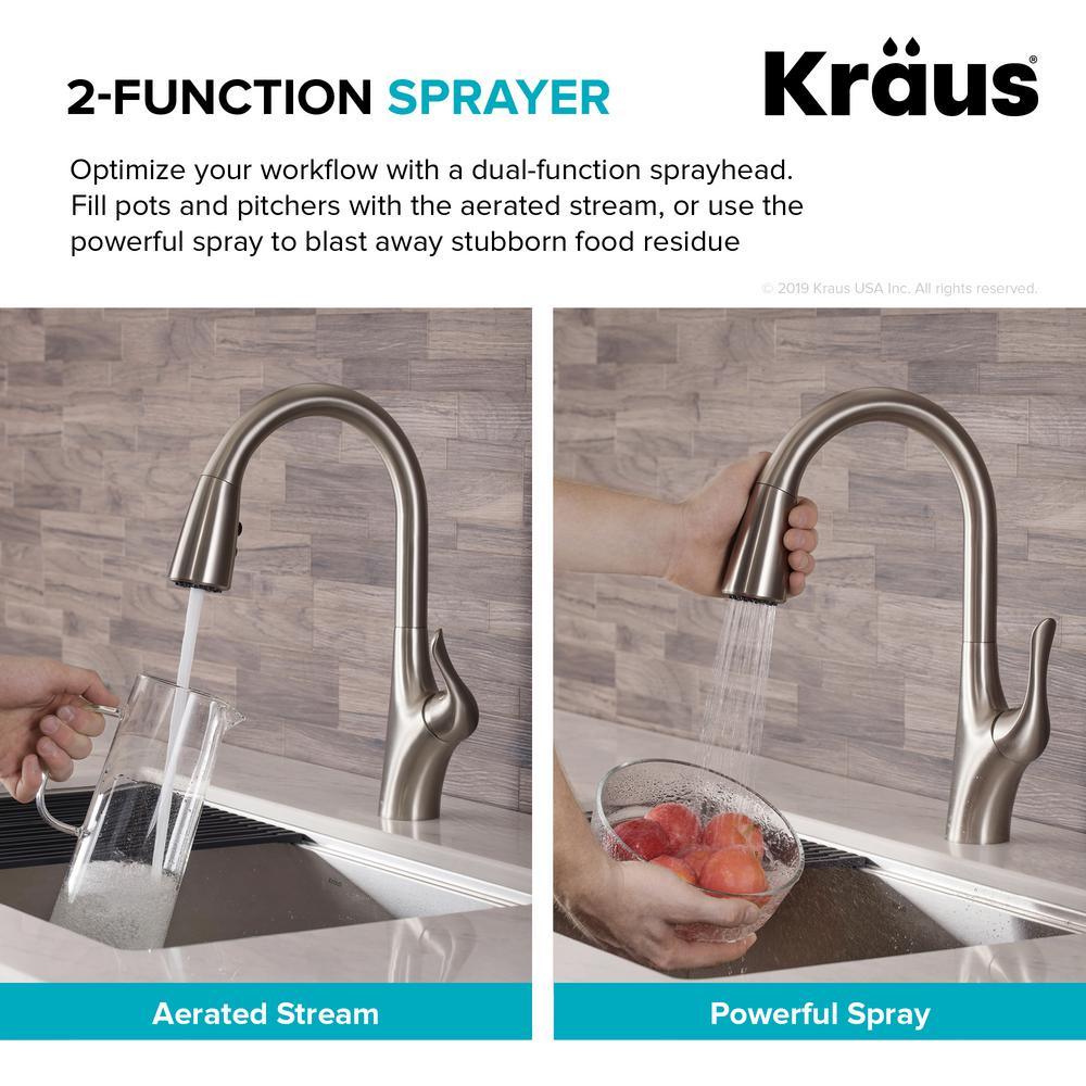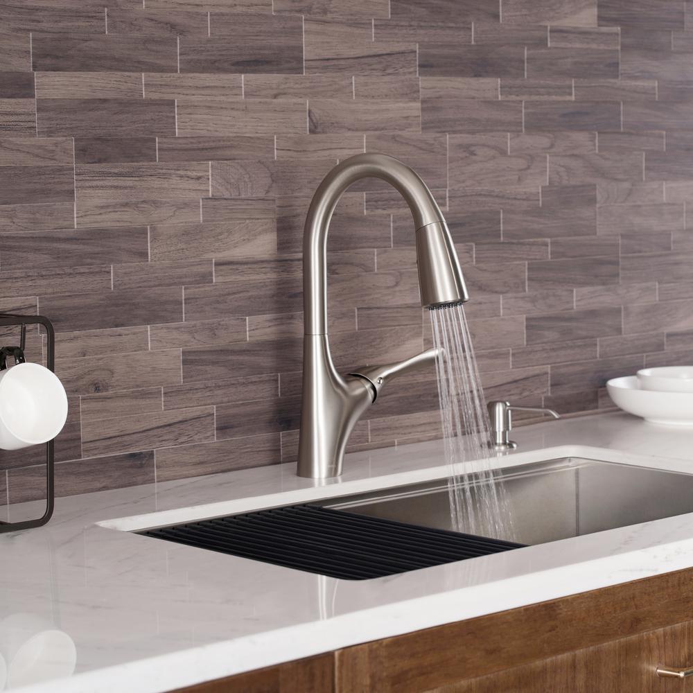 Merlin is a sleek transitional faucet with an elegantly curved ergonomic handle. Merlin features a highly functional pull-down design with Reach technology for an extended range of motion. Pre-attached waterlines and mounting hardware are included for easy installation.